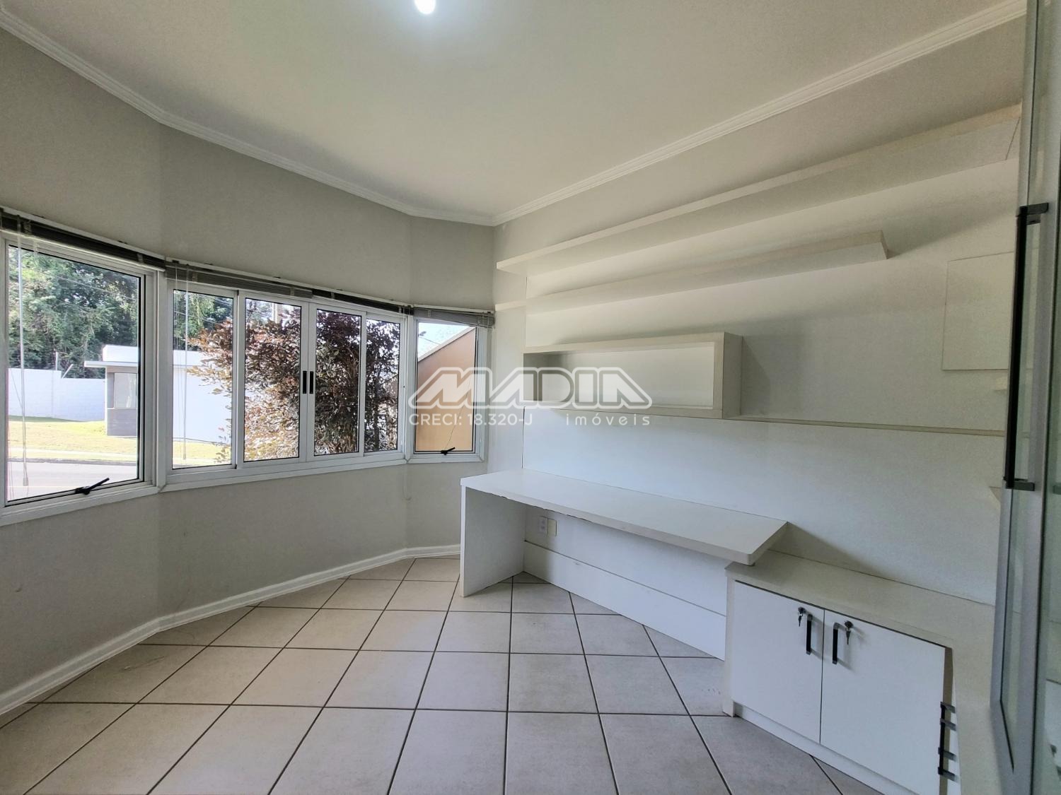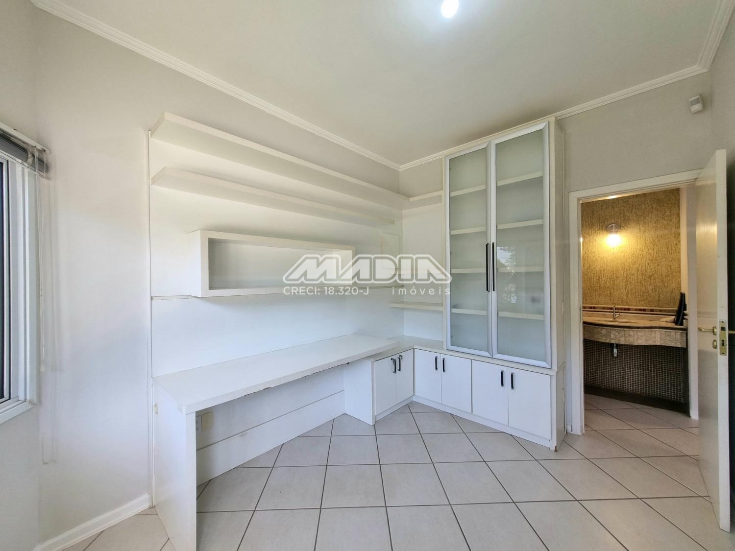 Casa de 304,69m², 4 dormitórios com armários planejados e varanda, sendo 2 suítes, closet, 2 dormitórios americanos, banheiro social, living amplo dois ambientes sendo um dos ambientes com lareira, lavabo, escritório, cozinha planejada, despensa, área de serviço, com armários. Área gourmet com churrasqueira, piscina aquecida, um quarto e banheiro, aquecimento solar, garagem para 4 carros, sendo 2 cobertas, aceita pet.