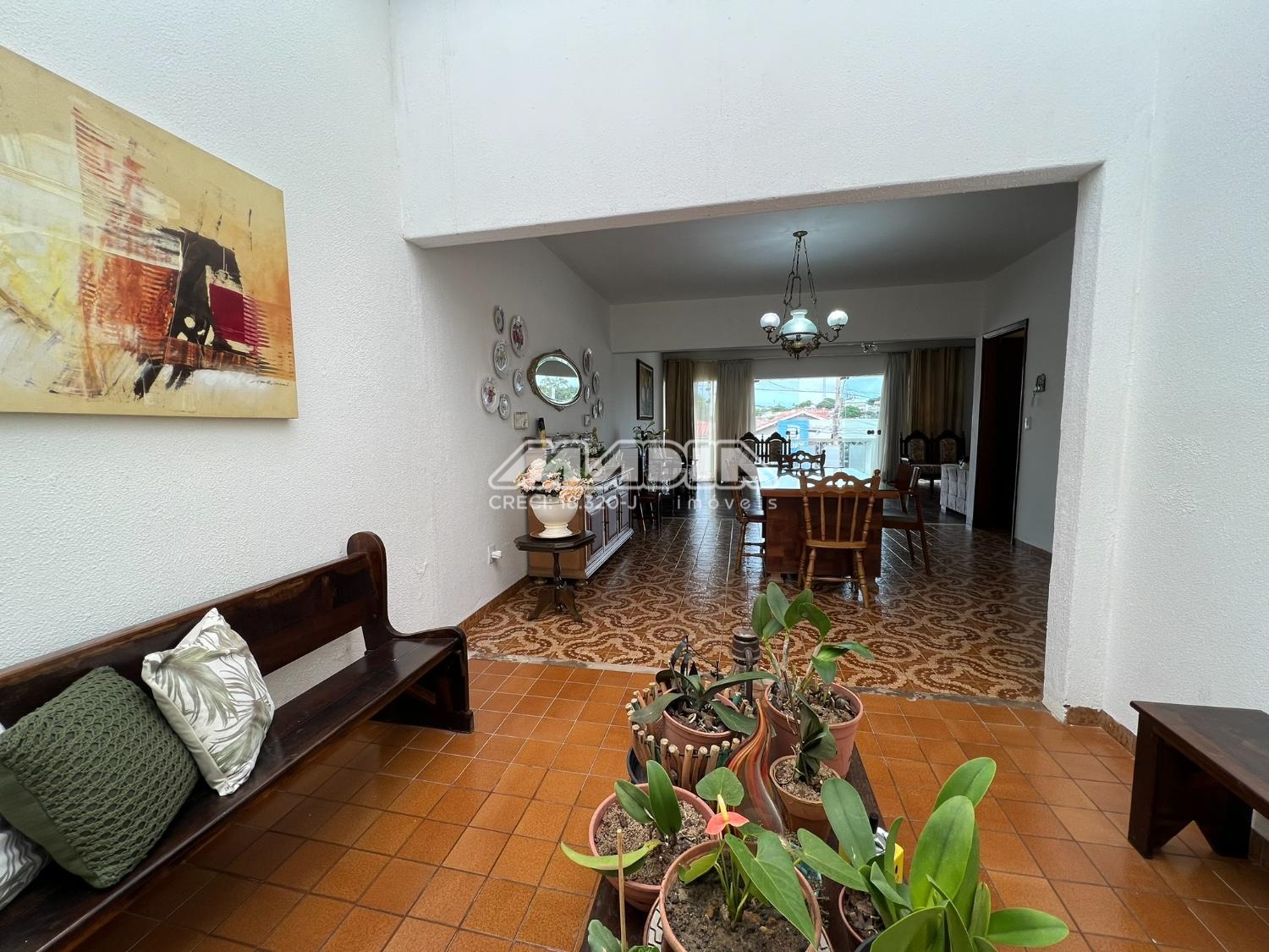 Com uma sala ampla, tv e estar com varanda privativa, sala de jantar espaçosa em frente a um jardim de inverno, cozinha com armário embutido e área íntima com roupeiro no corredor. São 3 quartos com armários de madeira nobre, sendo um deles suíte. Um banheiro social amplo que pode ser reformado para criar uma segunda suíte. Quintal grande com horta, orquidário e edícula com lavanderia. Não aceita pet.