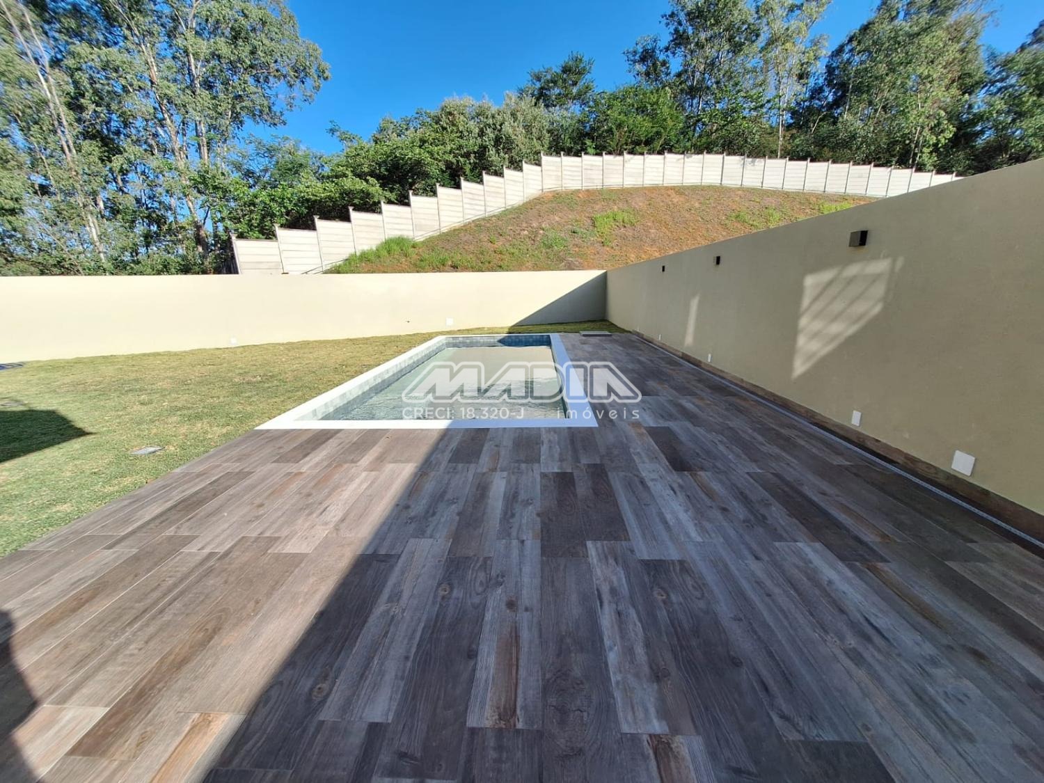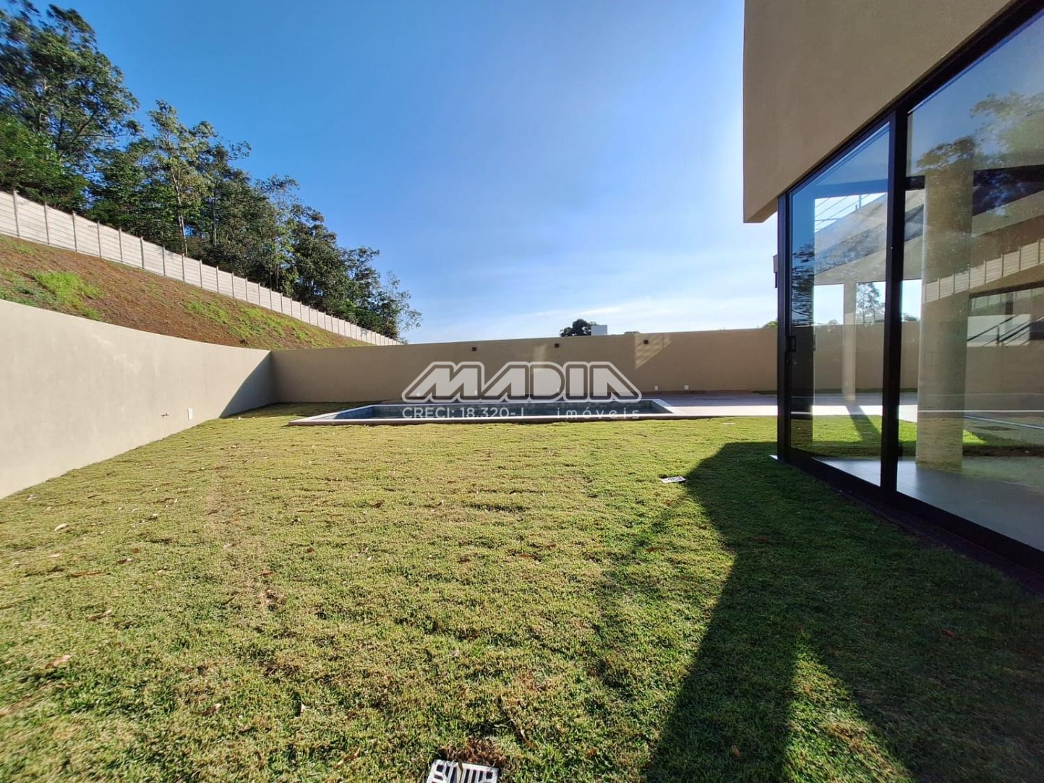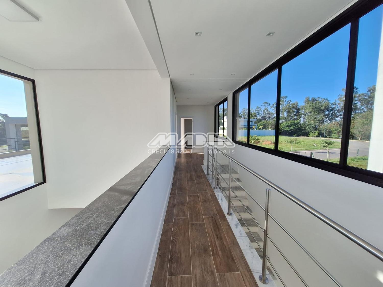 Sobrado bem iluminado com pé direito duplo, fundos para uma mata de preservação, 400 m² de área construída em um terreno de 607 m², contendo 4 suítes, sendo 3 no piso superior e 1 no inferior, podendo ser reversível para escritório, lavabo, salas integradas à cozinha e ao lazer, lindas varandas nas suítes para você comtemplar uma bela vista para mata de preservação dos fundos da casa. Todos os banheiros com pias e bancadas de mármore; aquecimento solar, churrasqueira, piscina e quintal amplo.