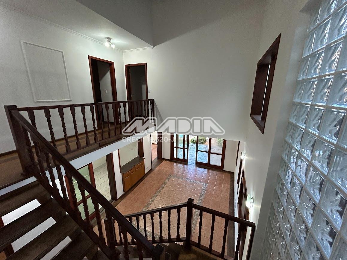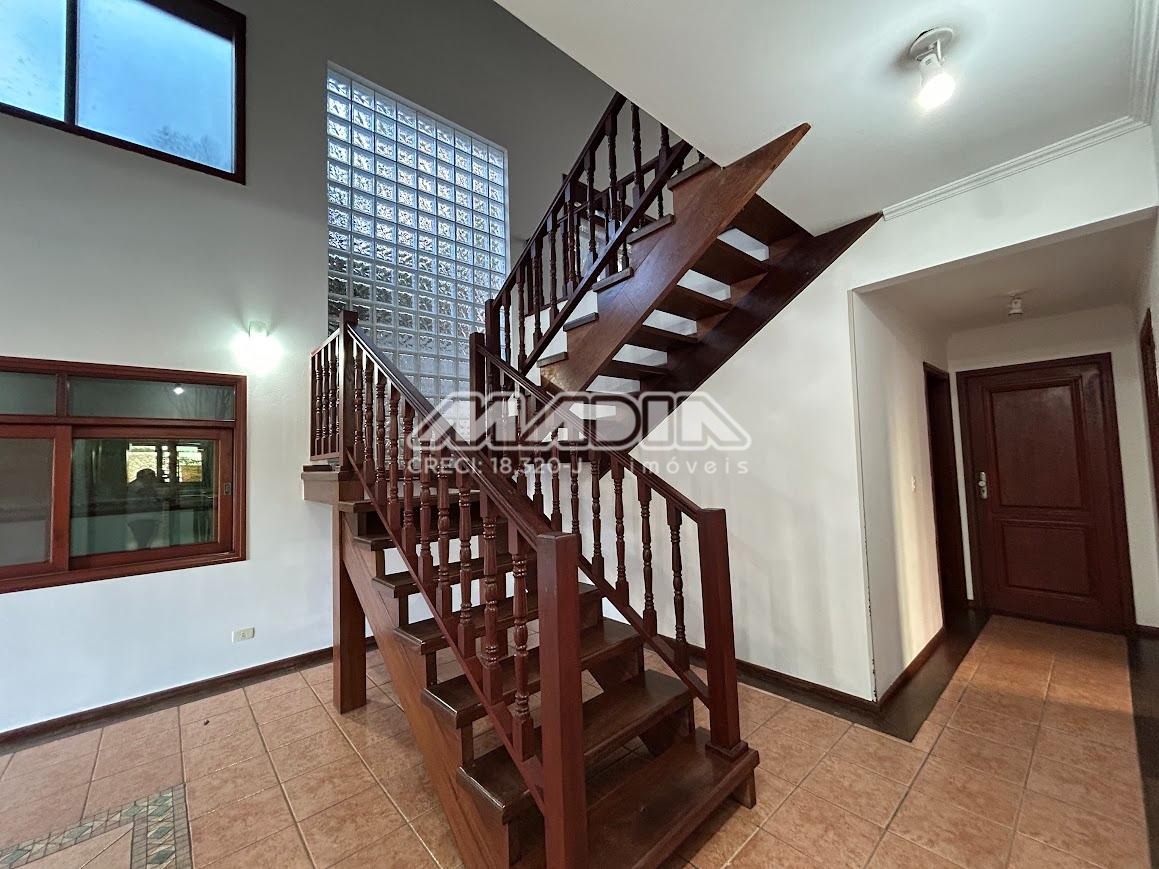 Casa com uma ótima estrutura, 3 suítes todas com closet e armários, banheiros com armário e box blindex, piso em madeira, sala de estar com lareira, lustres, sala de tv ampla, guarda – corpo em madeira, piso em cerâmica, sala de jantar espaçosa, cozinha e copa com armários planejados, degraus da escada em madeira maciça, escritório com bastante vidros, proporcionando uma claridade natural, lavanderia grande e com armário, despensa com prateleiras em mármore.
