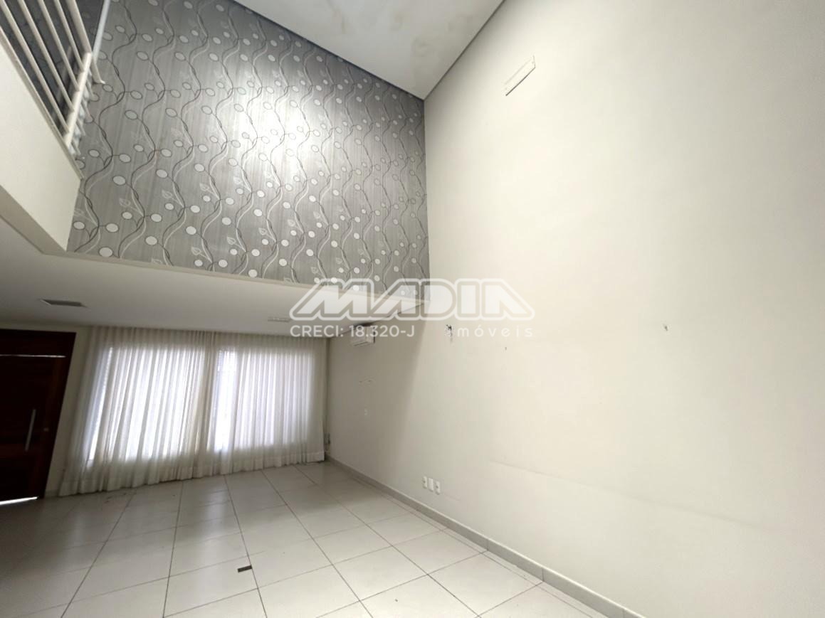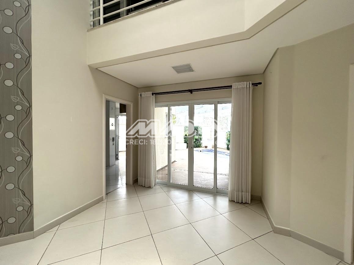 • Sala de estar e sala de jantar integradas, com pé-direito alto, ar condicionado e cortinas