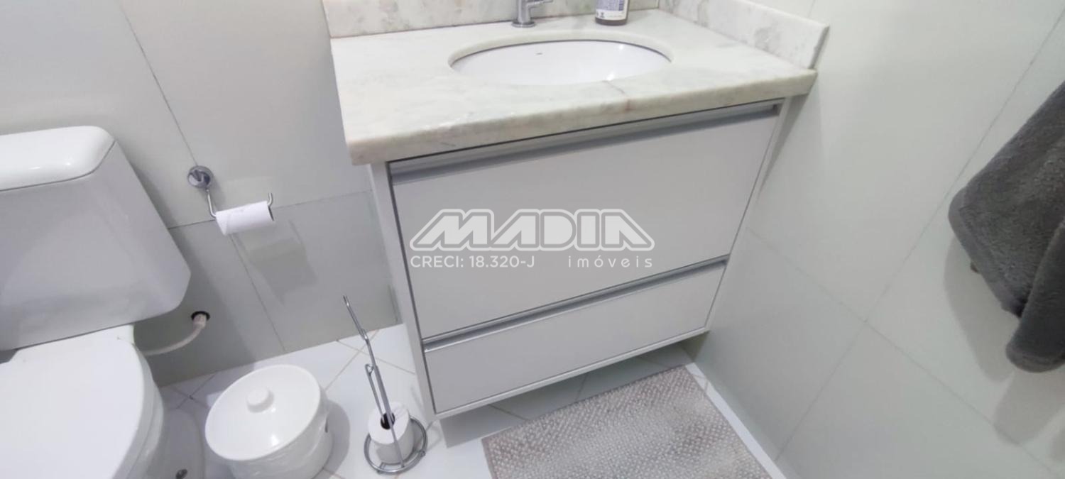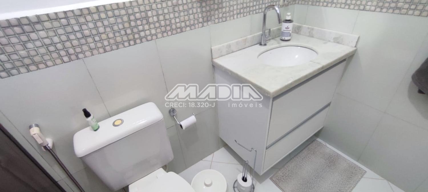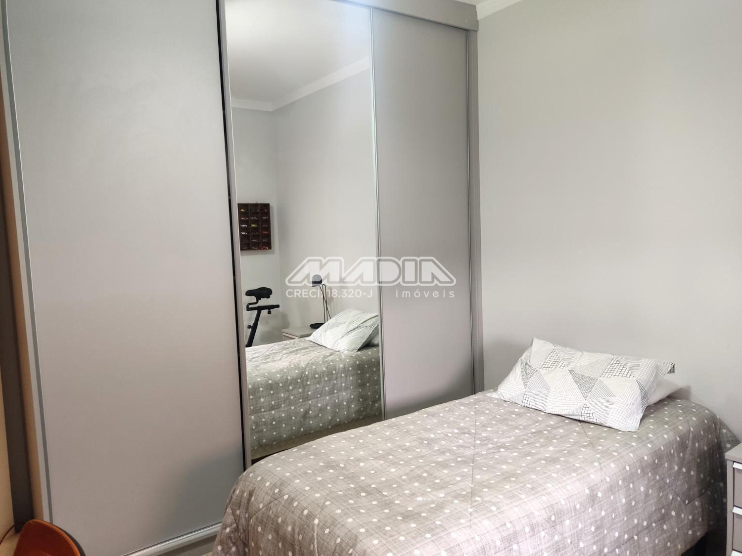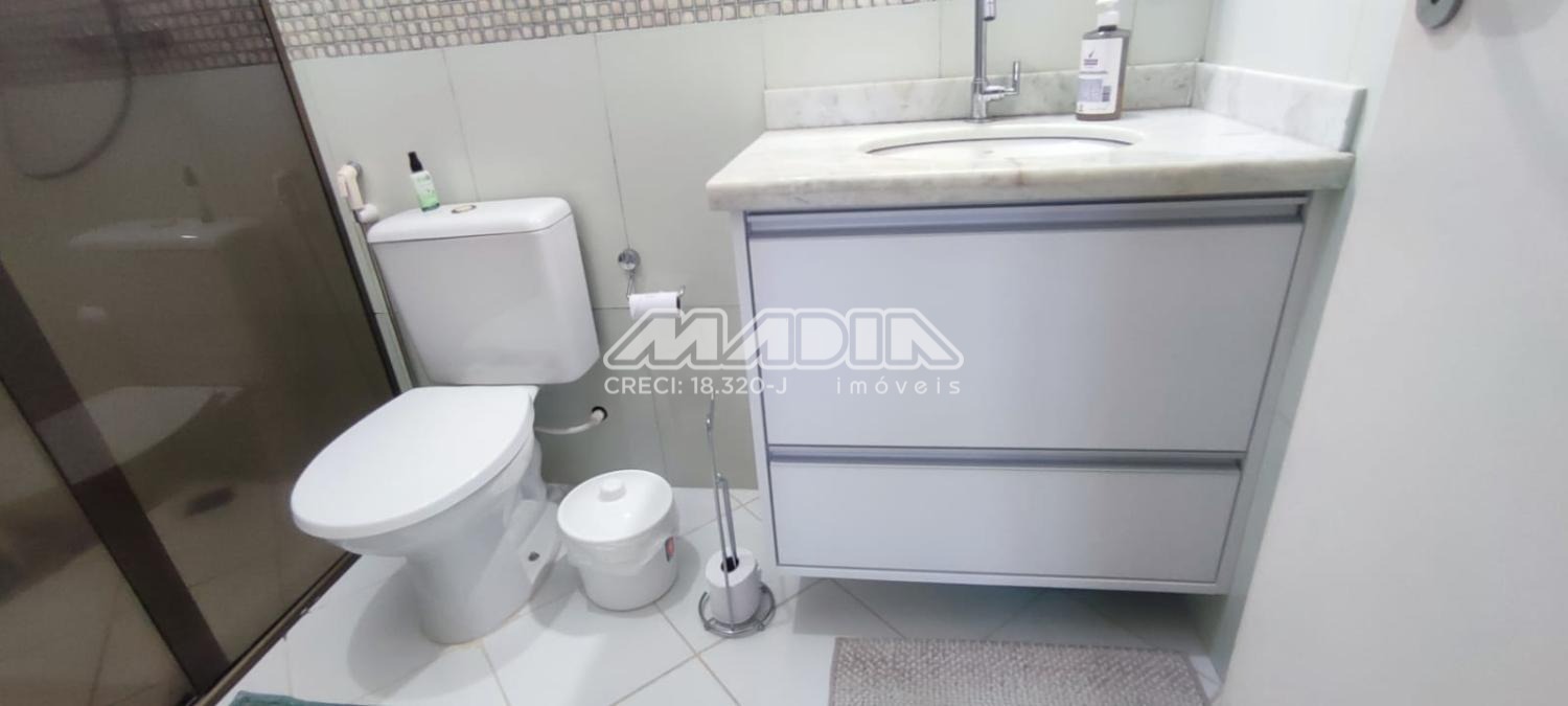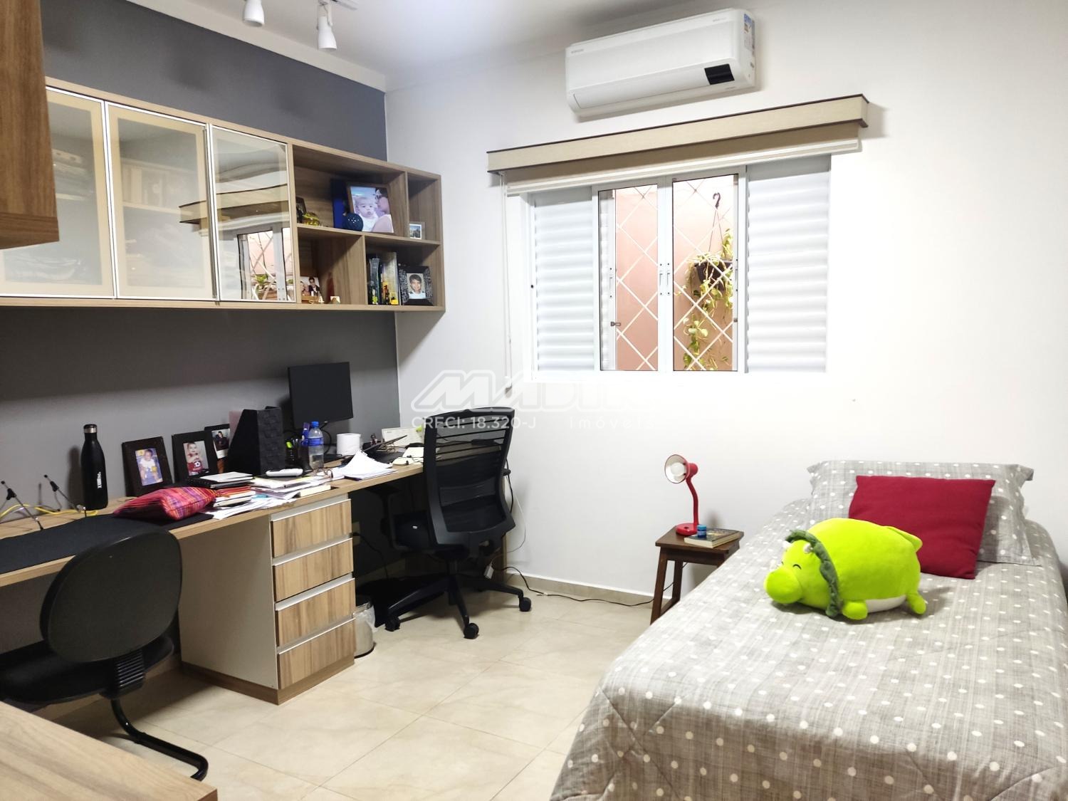 São três quartos de bom tamanho e com armários planejados e uma suíte completa.