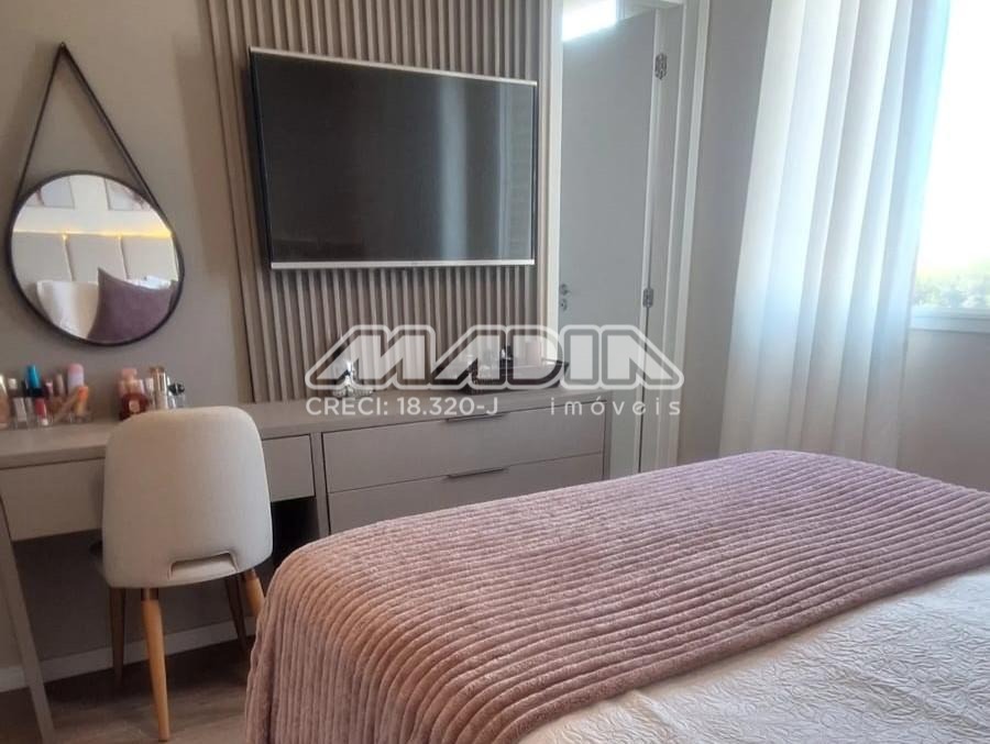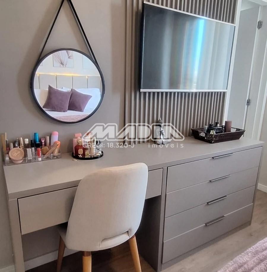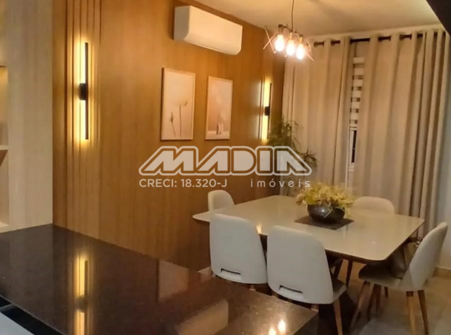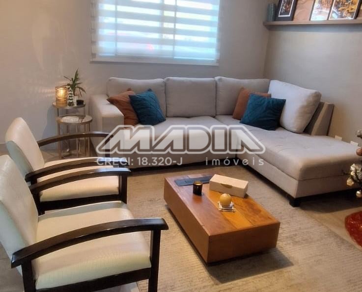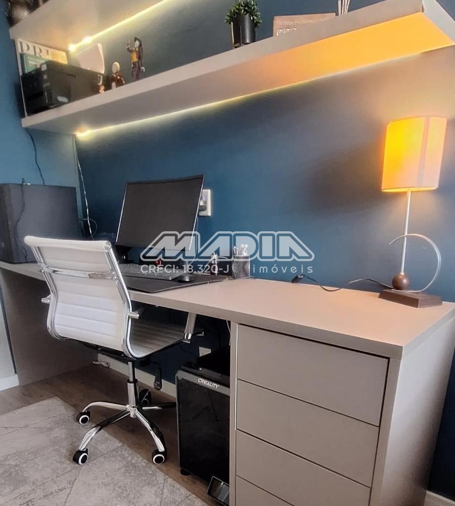 O imóvel possui sala de TV com rack, sala de jantar e cozinha totalmente integradas, criando um ambiente moderno, funcional e acolhedor. A cozinha é completa, equipada com armários planejados, forno elétrico, fogão, coifa, máquina de lavar louça e triturador de lixo orgânico, além de sistema para separação de lixo orgânico e resíduos e ambiente climatizado com aparelho de ar condicionado.