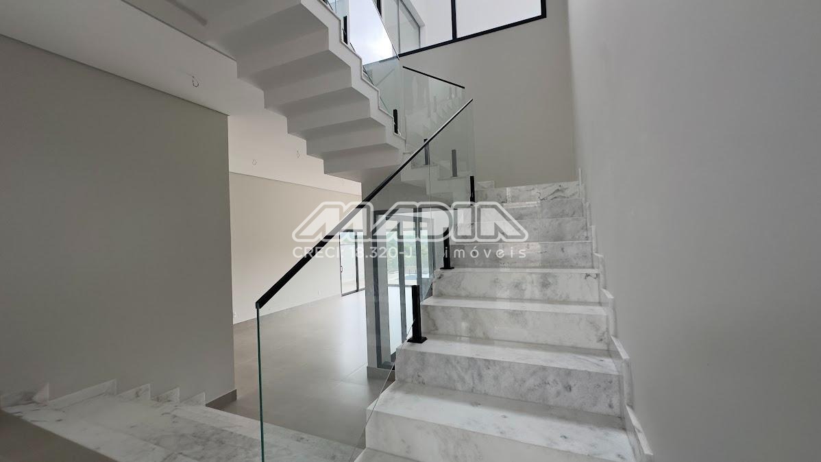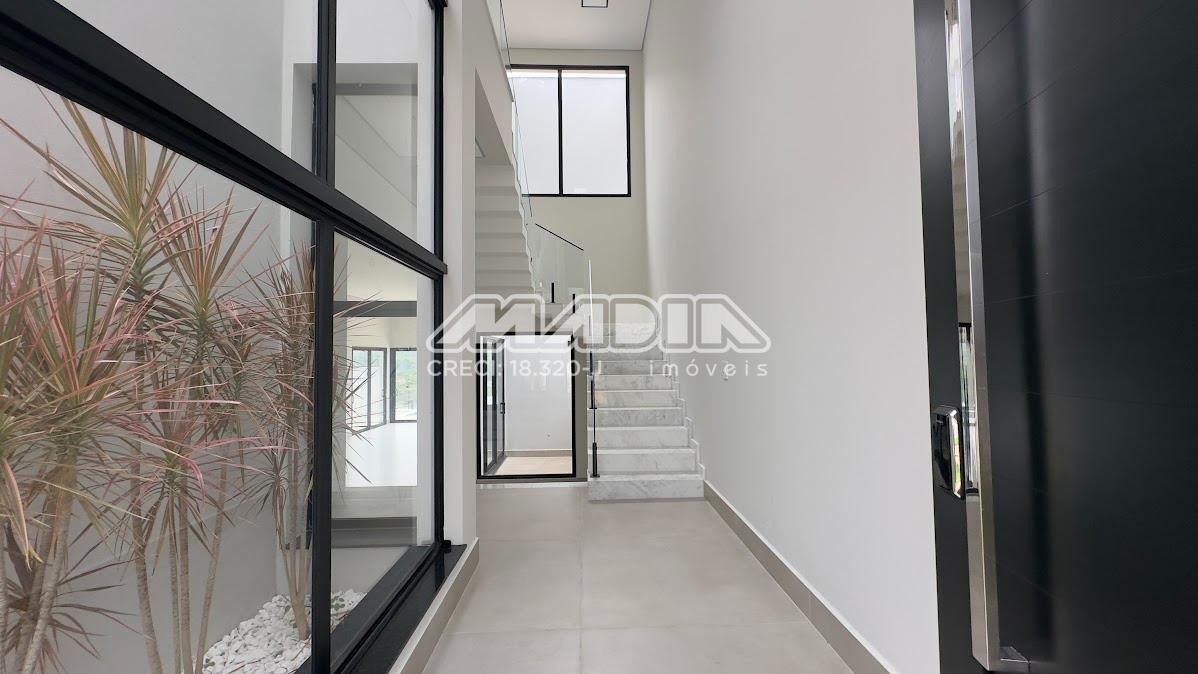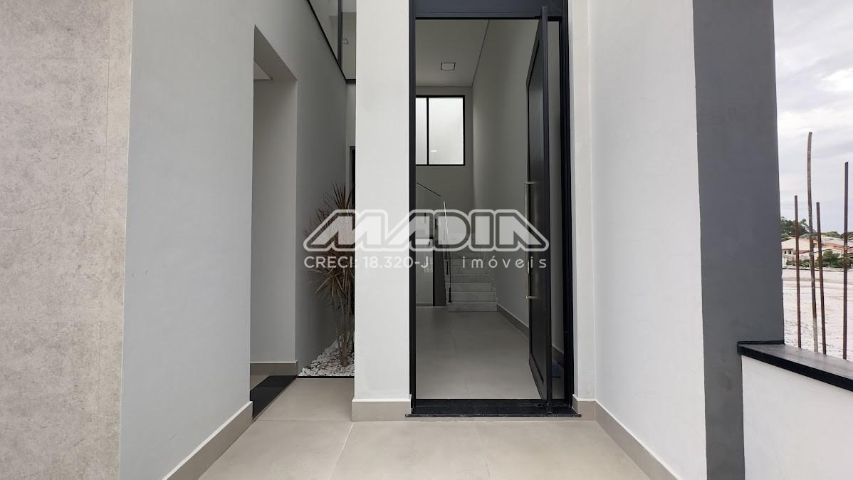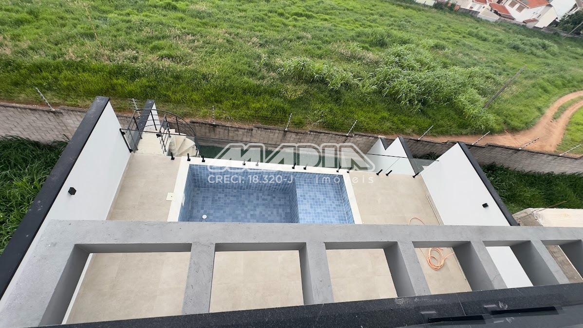 Casa nova, sem uso, com 301,79m² de terreno e 251m² de construção sendo 3 suítes com preparo para ar condicionado, porta balcão e sacada, sendo a máster com closet, jardim de inverno, pé direito alto, sala de estar, sala de jantar, cozinha estilo aberto e com preparo para churrasqueira a gás, escritório, lavabo, lavandeira, garagem para 4 carros, sendo 2 cobertas, piscina com banheiro de apoio, casa de máquina na parte de baixo da piscina, jardim gramado na frente.