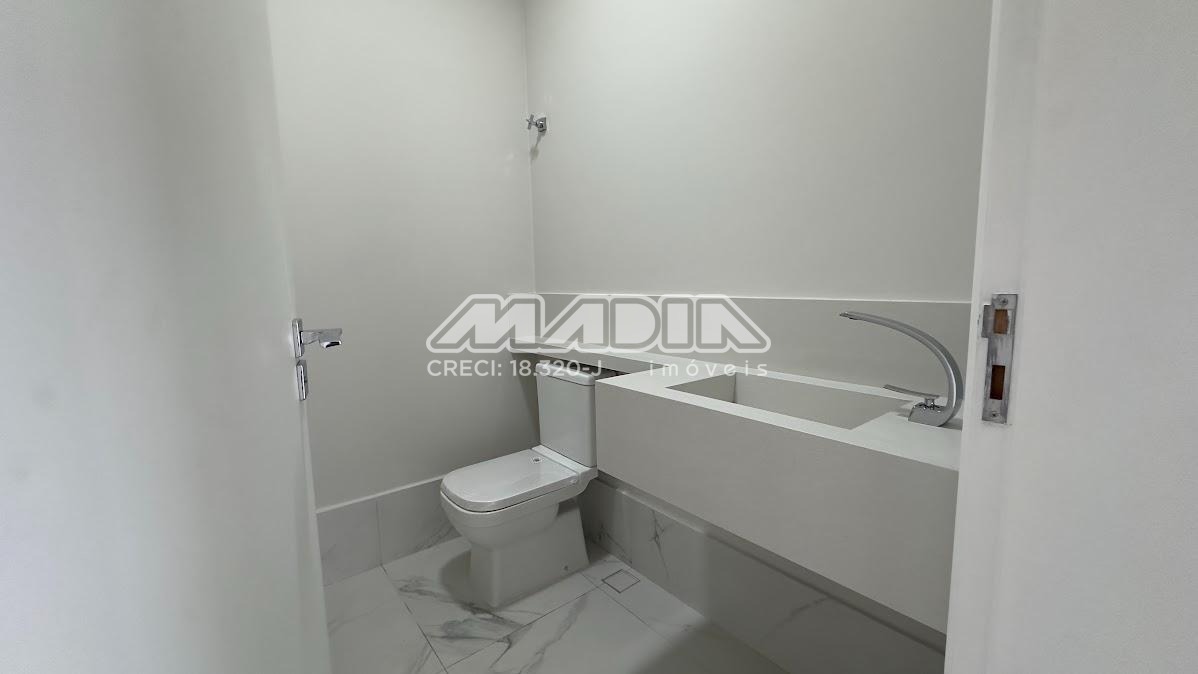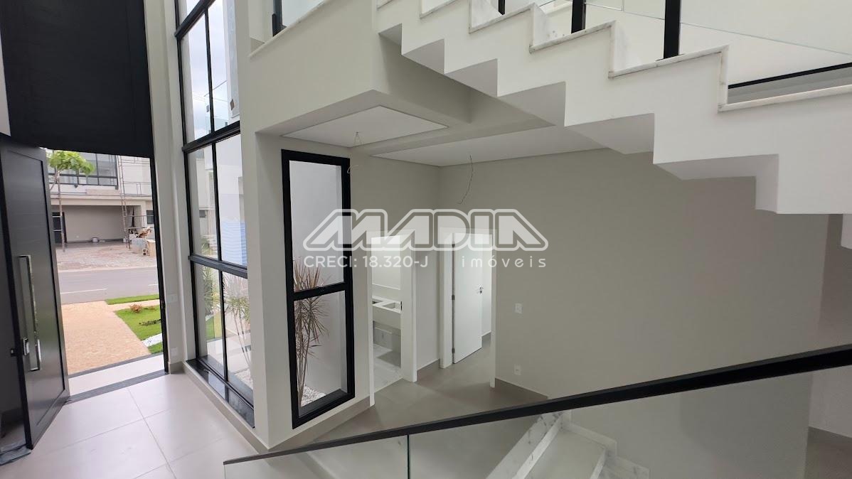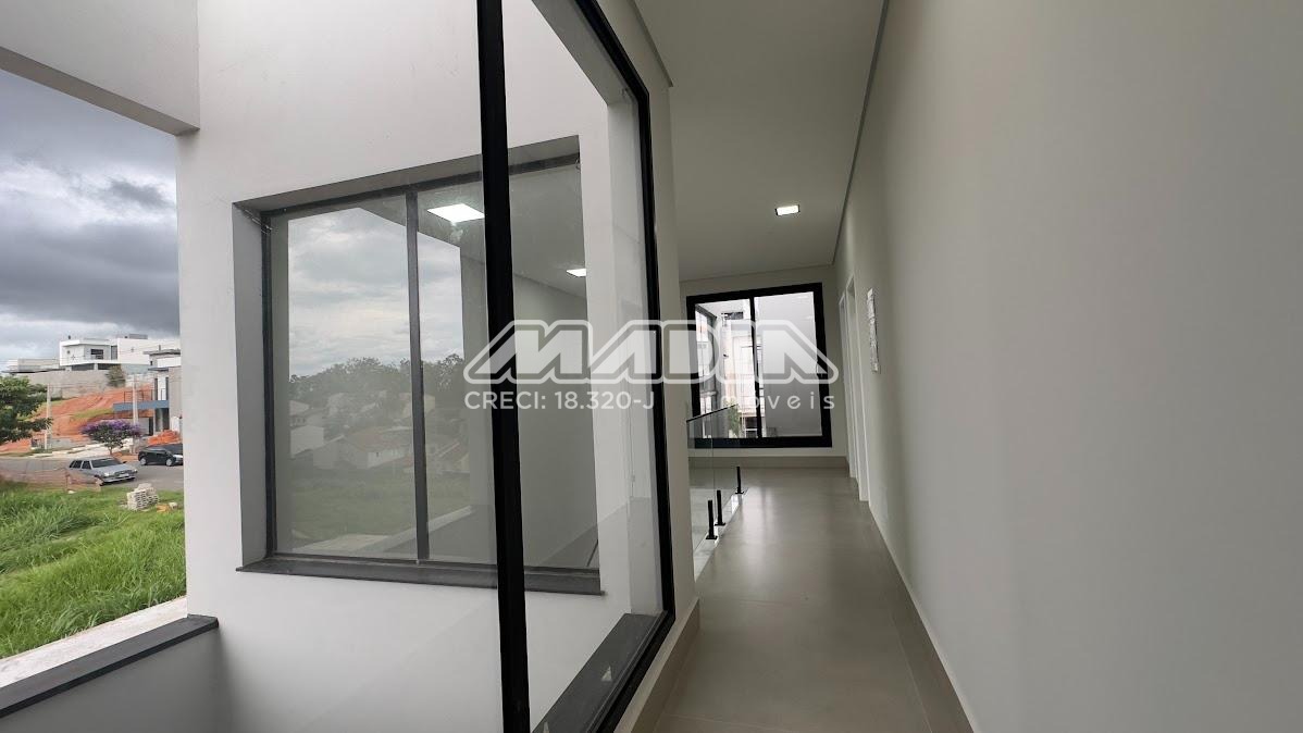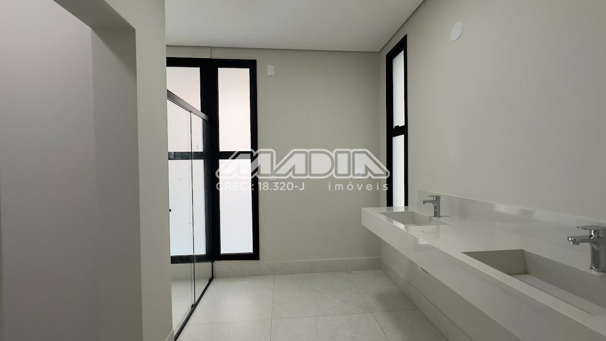 Casa nova, sem uso, com 301,79m² de terreno e 251m² de construção sendo 3 suítes com preparo para ar condicionado, porta balcão e sacada, sendo a máster com closet, jardim de inverno, pé direito alto, sala de estar, sala de jantar, cozinha estilo aberto e com preparo para churrasqueira a gás, escritório, lavabo, lavandeira, garagem para 4 carros, sendo 2 cobertas, piscina com banheiro de apoio, casa de máquina na parte de baixo da piscina, jardim gramado na frente.