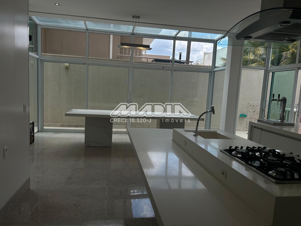 O imóvel possui 420 m² de área total, sendo 340 m² de área construída, com projeto moderno, funcional e acabamento sofisticado.