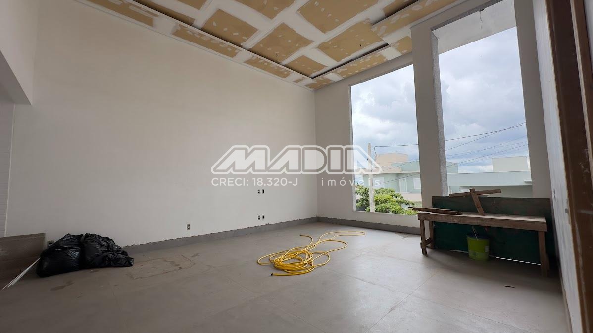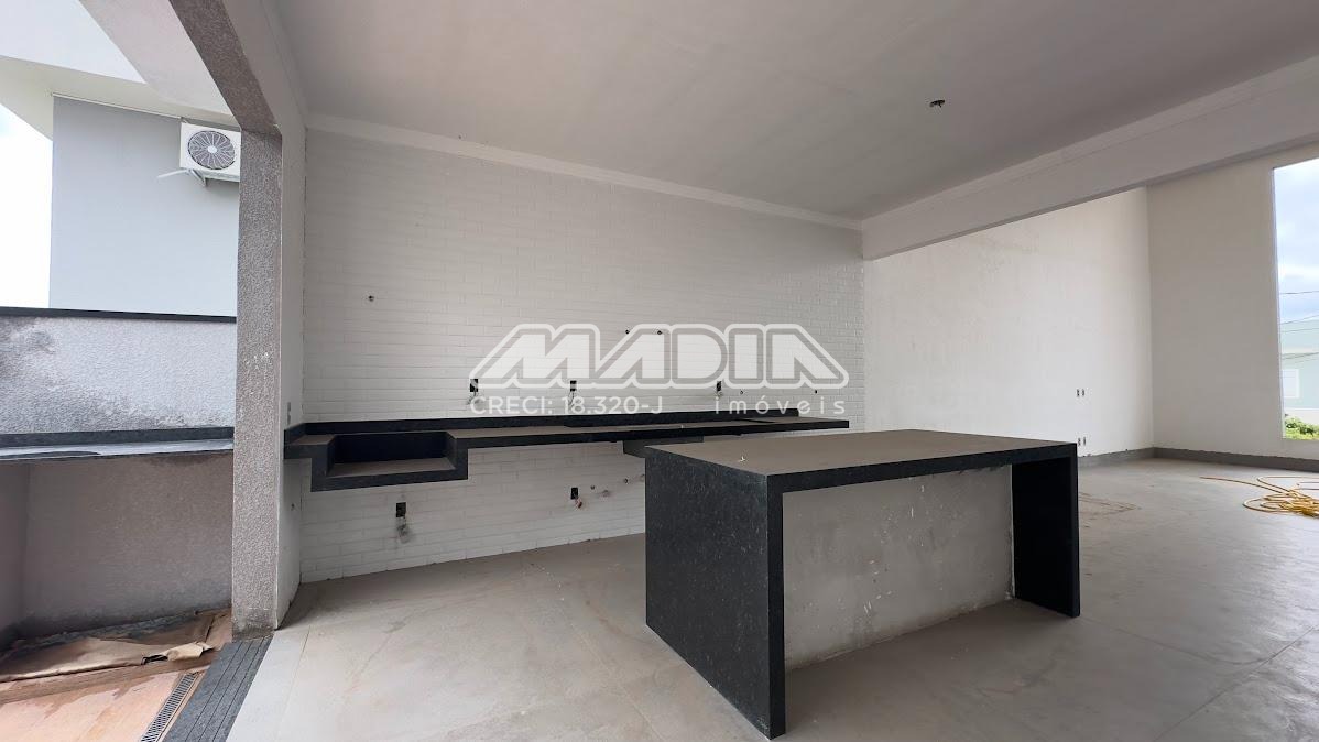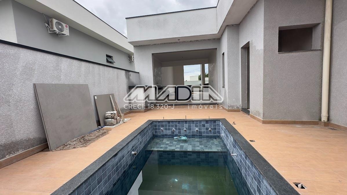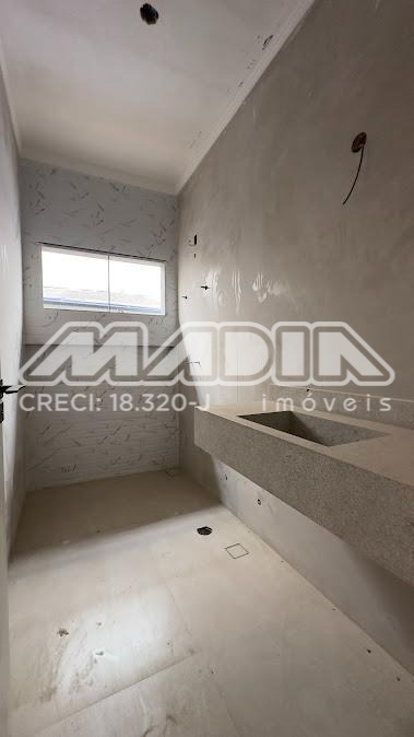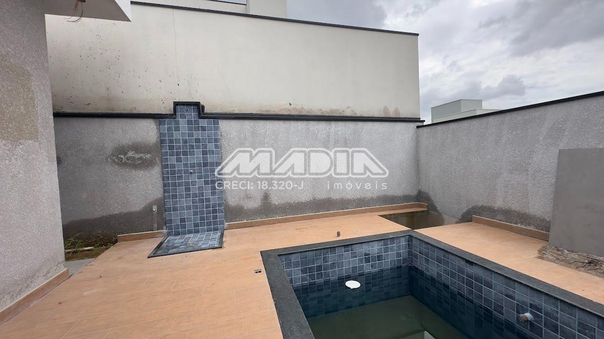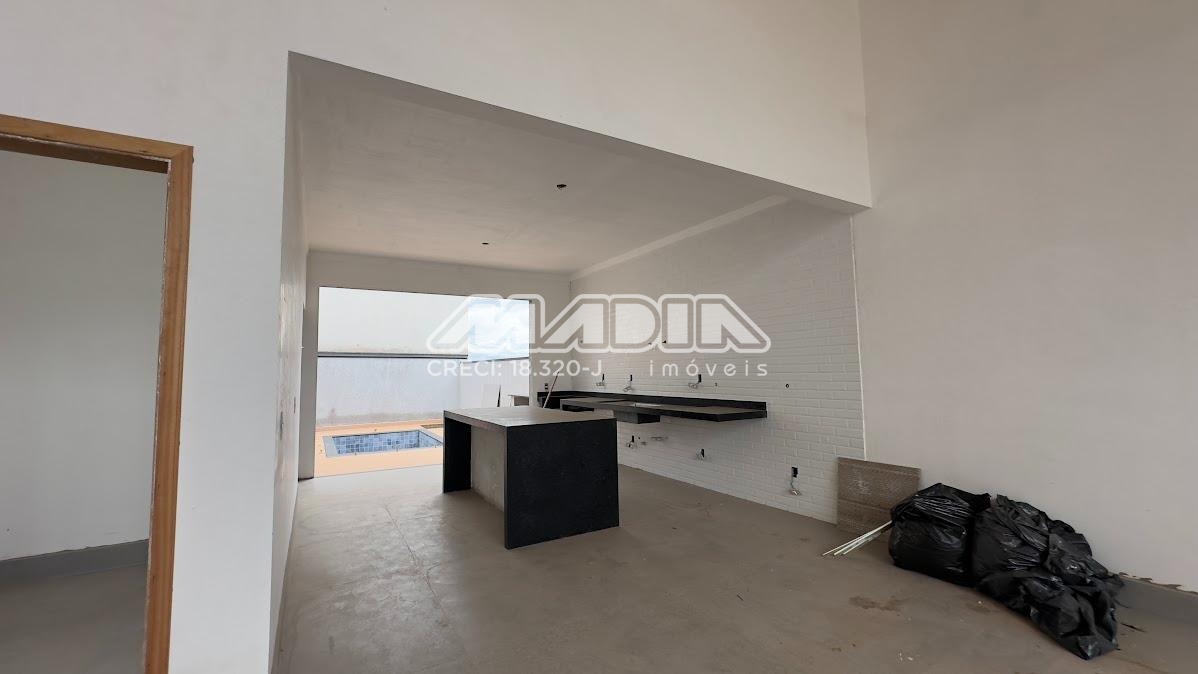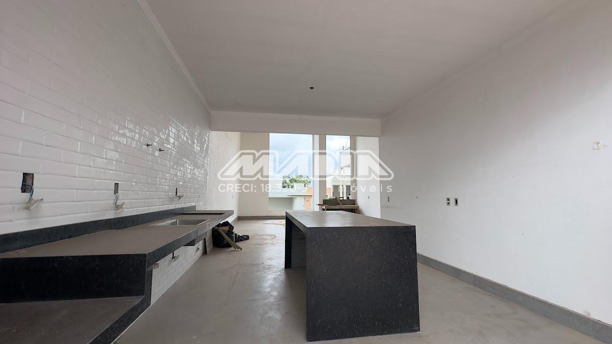 Projeto com pé direito duplo na sala, iluminação completa em LED, esquadrias em alumínio, piso em porcelanato, bancadas em granito, revestimento até o teto nas áreas molhadas, projeto paisagístico, aquecimento solar, piscina.