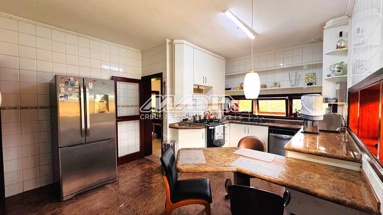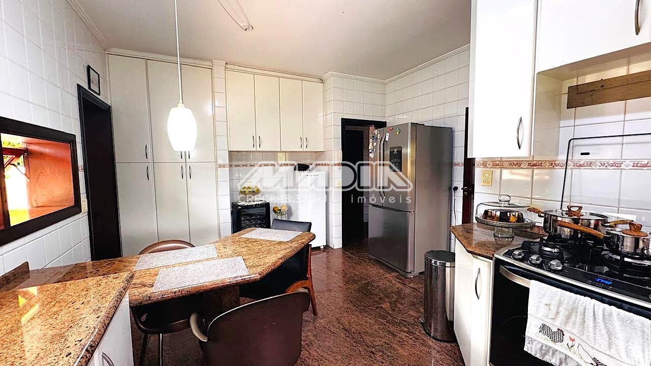 • Cozinha ampla com armários planejados, piso em granito integrada com a sala de jantar, quarto de hóspede