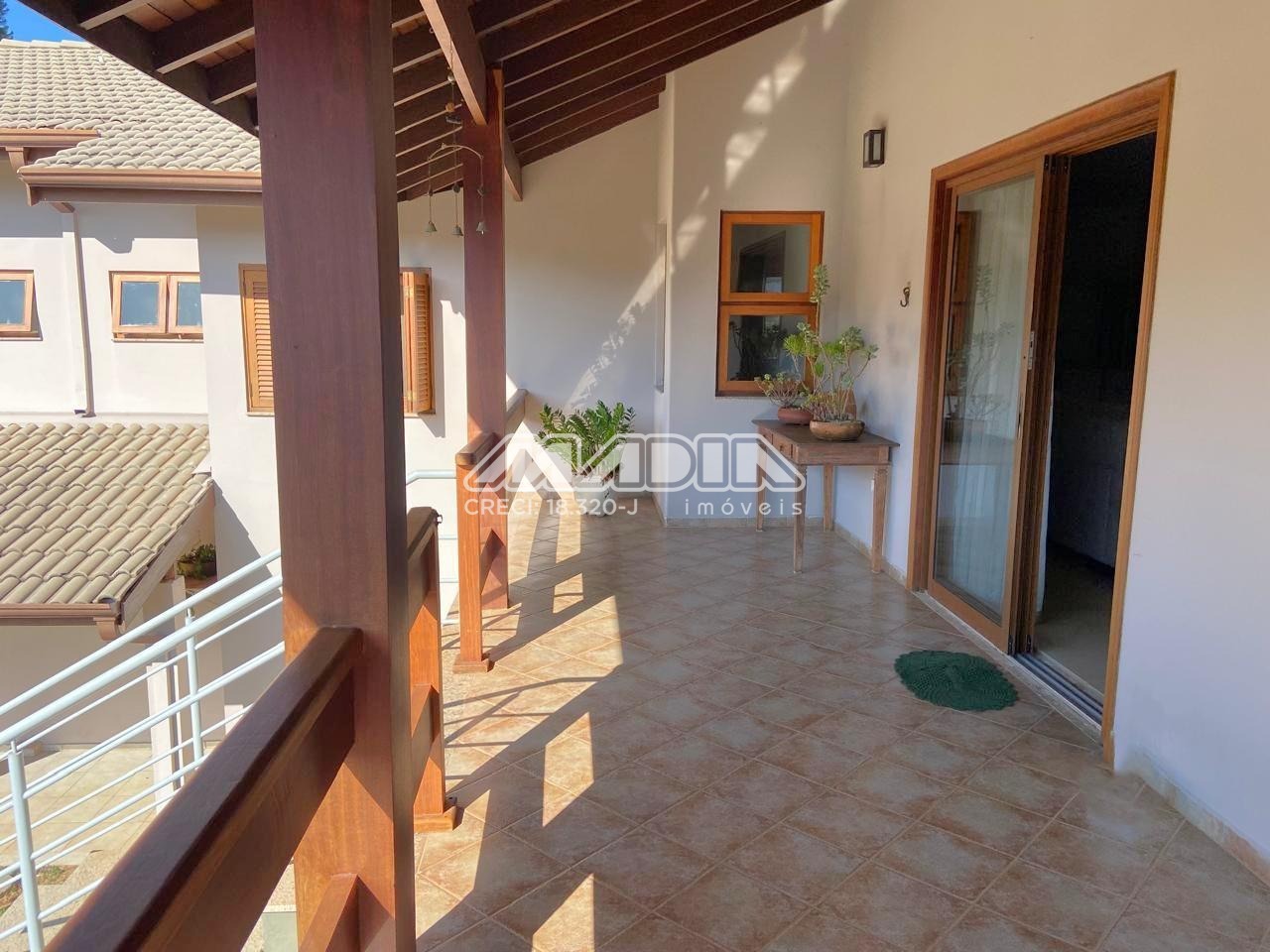 • A varanda ao redor da casa nos convida para um momento de reflexão além de ter uma vista maravilhosa para o verde permanente, desfrutando do sol da manhã.
