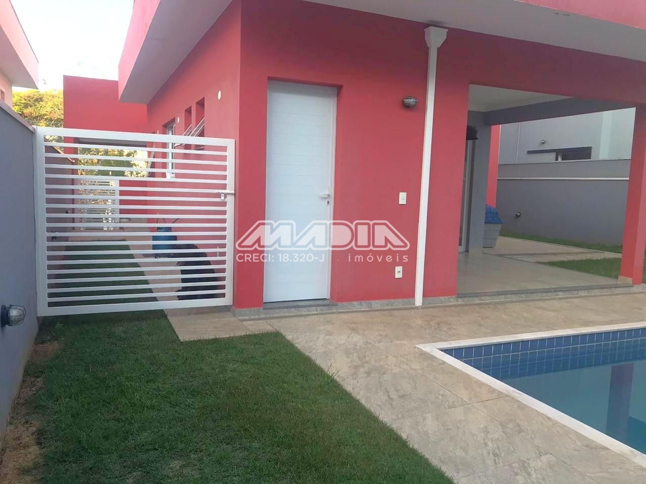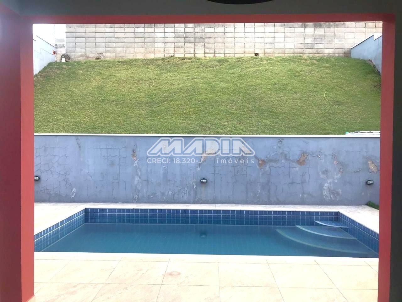 Área gourmet com churrasqueira, piscina, quintal gramado nos fundos podendo fazer um paisagismo.