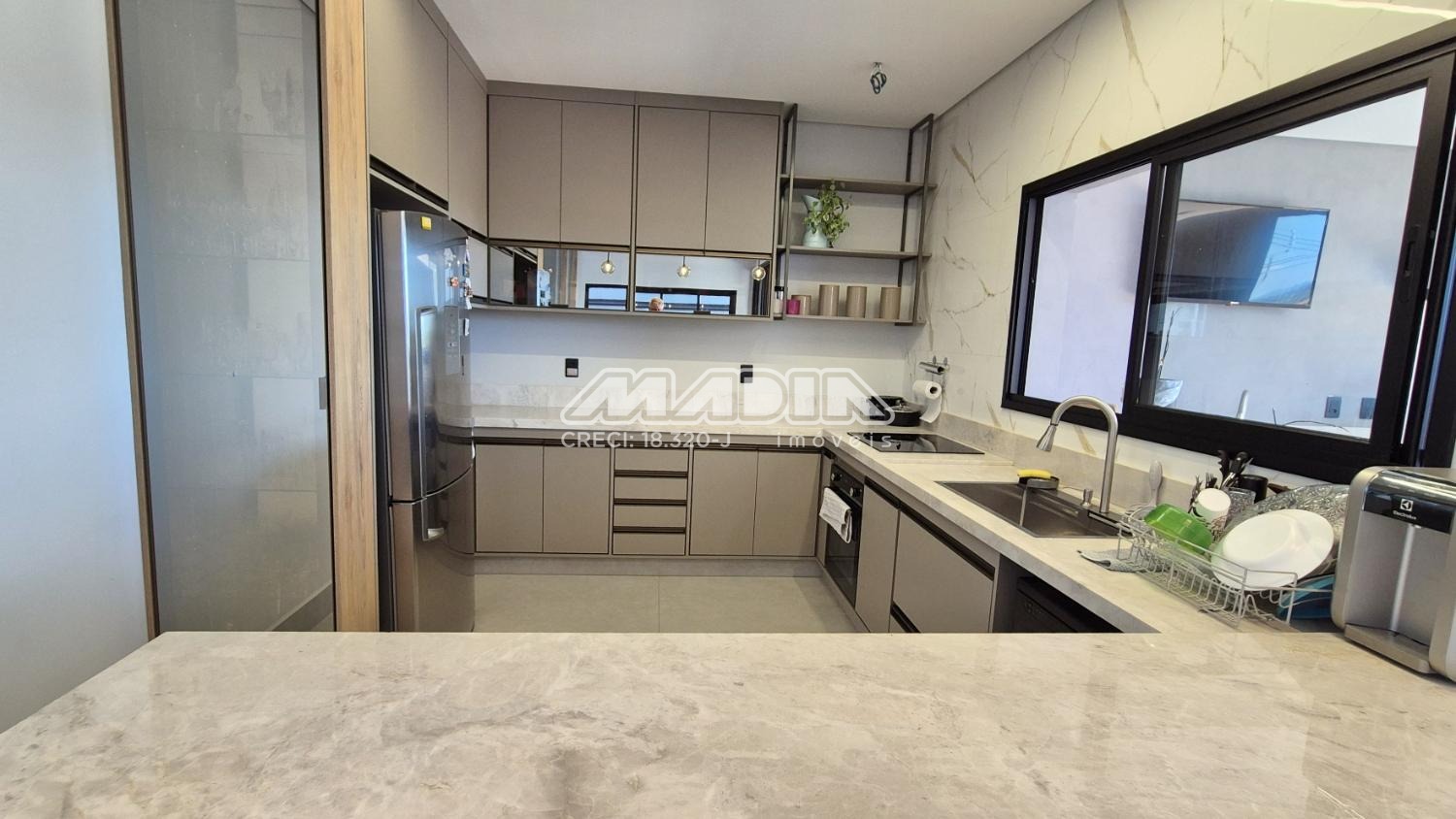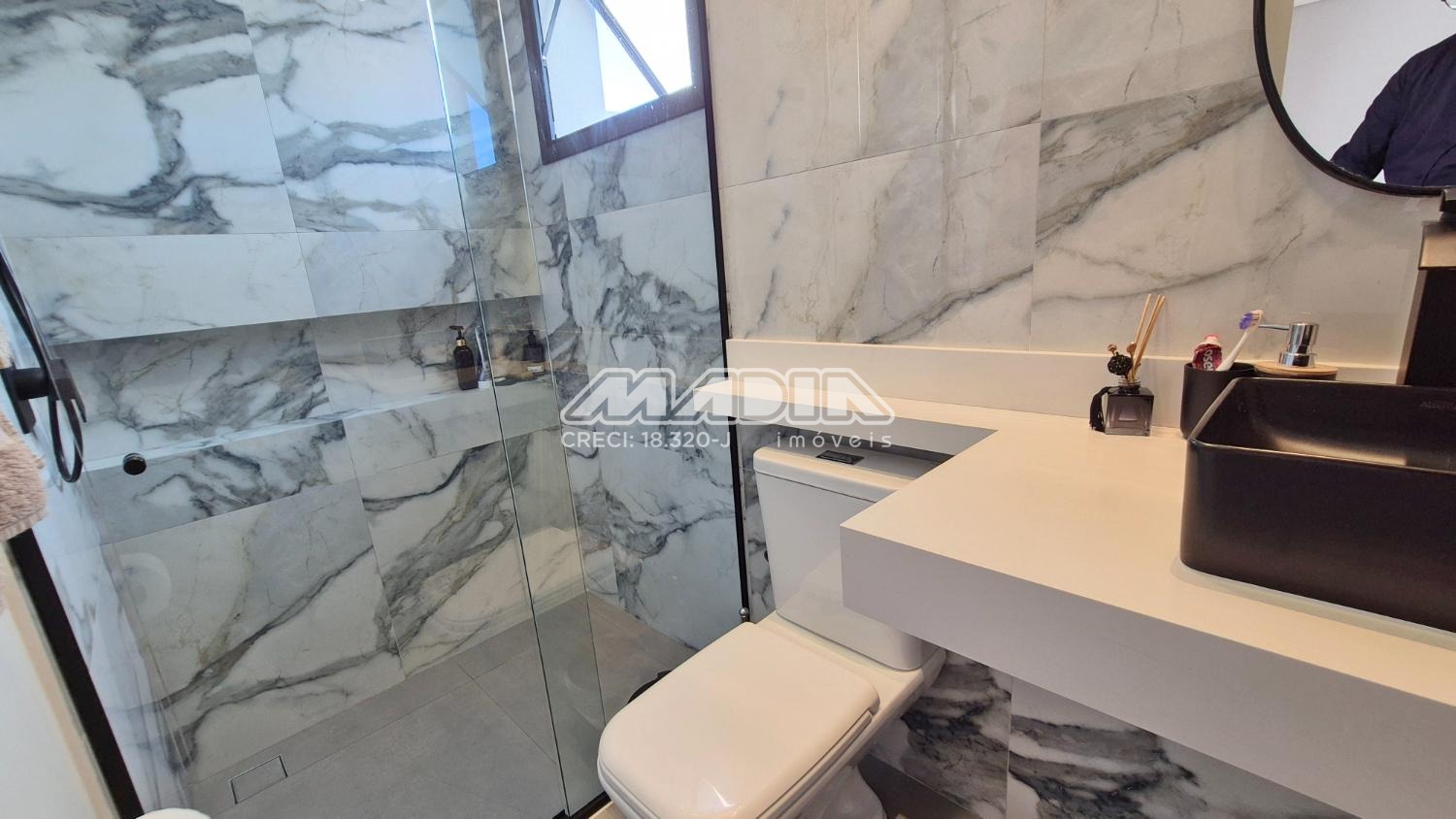 3 suítes com sacada e banheiros com blindex. Janelas automatizadas.