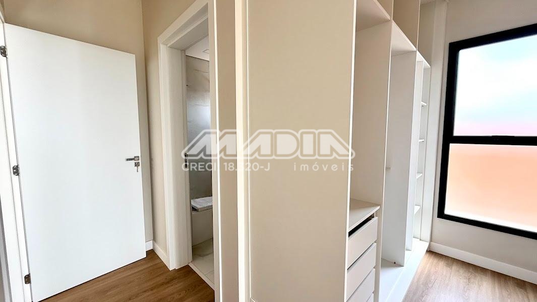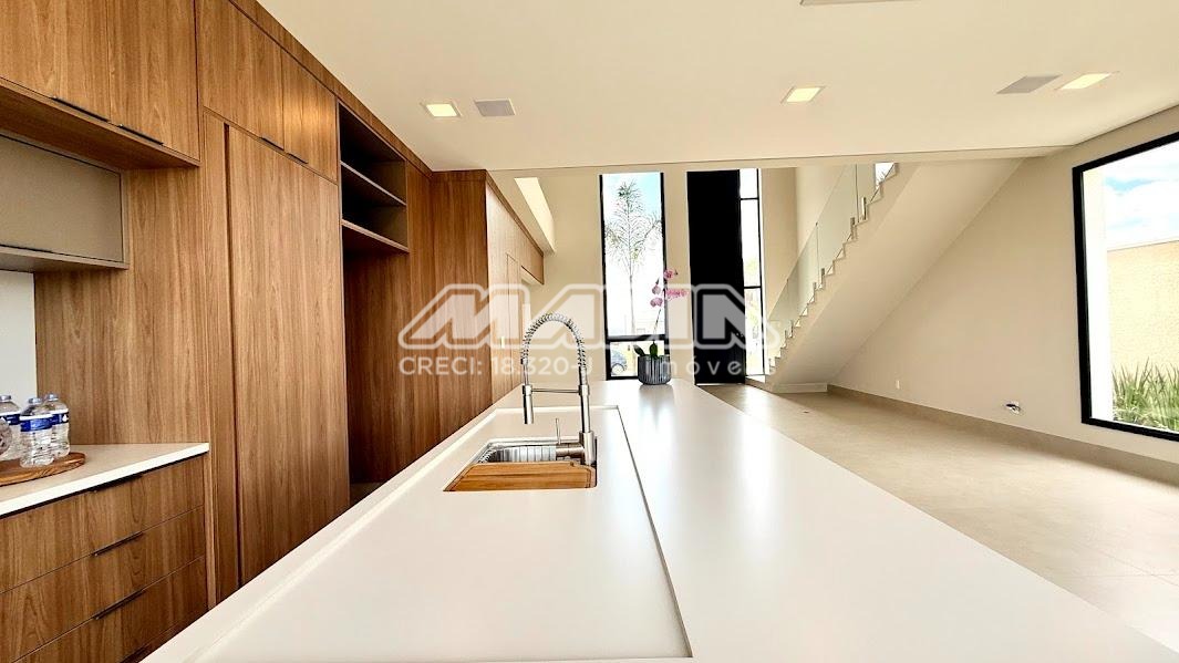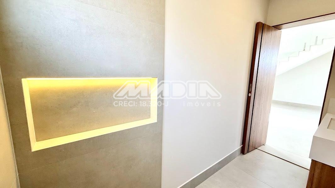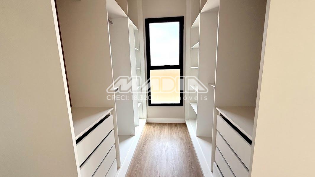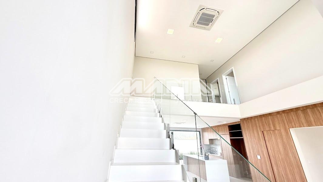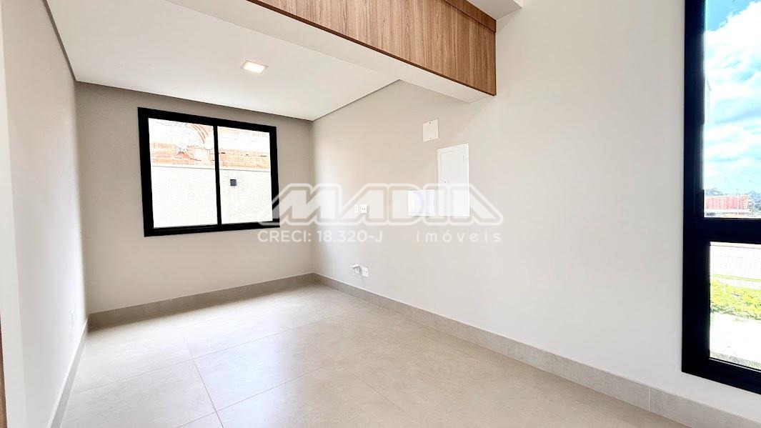 O imóvel possui 3 suítes com armários planejados, persianas automatizadas e iluminação em LED nos nichos, sendo a suíte máster com closet, cuba dupla e chuveiro duplo. Há ainda opção de 4ª suíte no térreo, além de escritório ideal para home office.