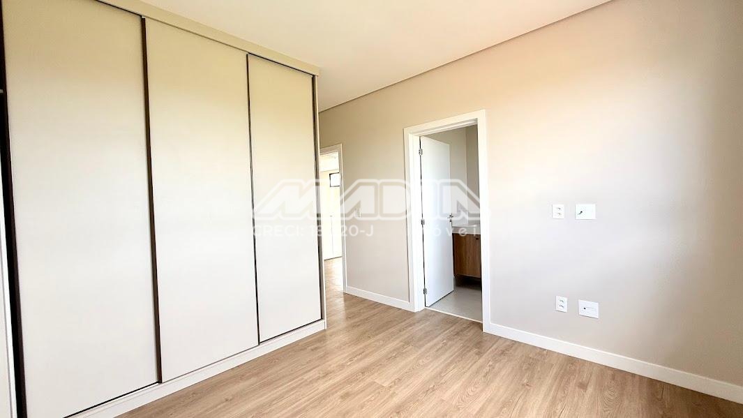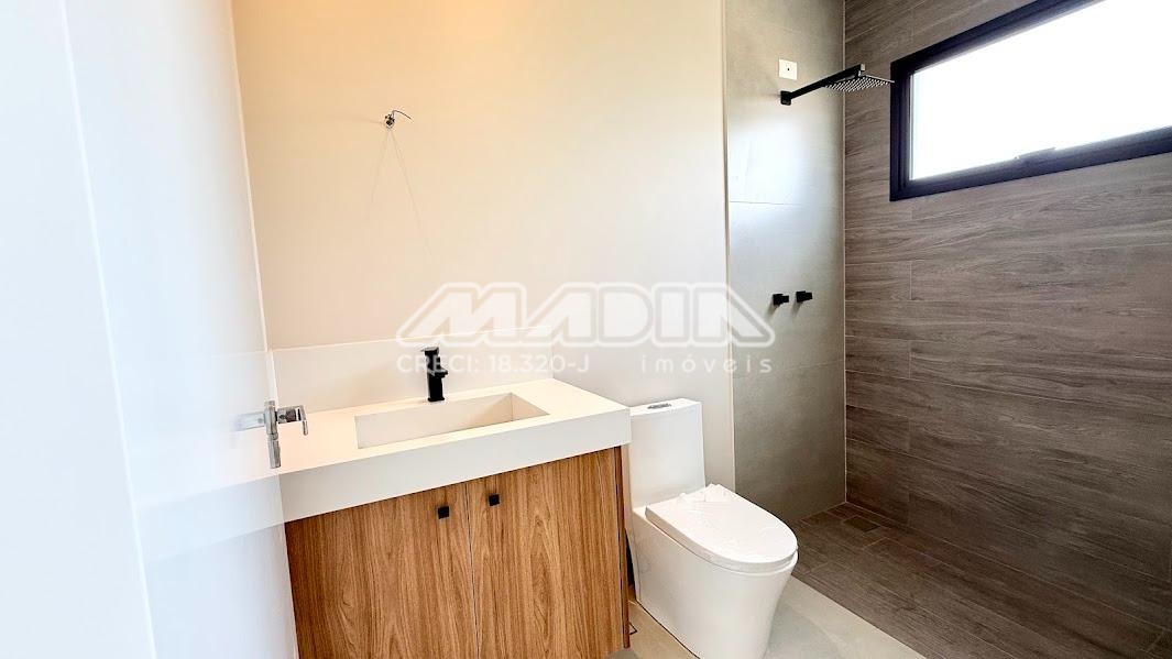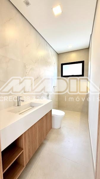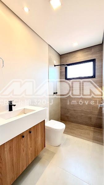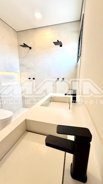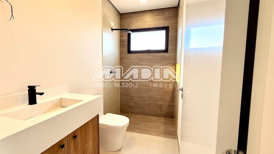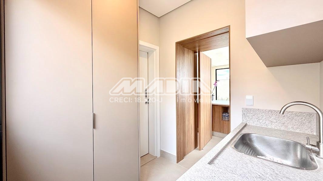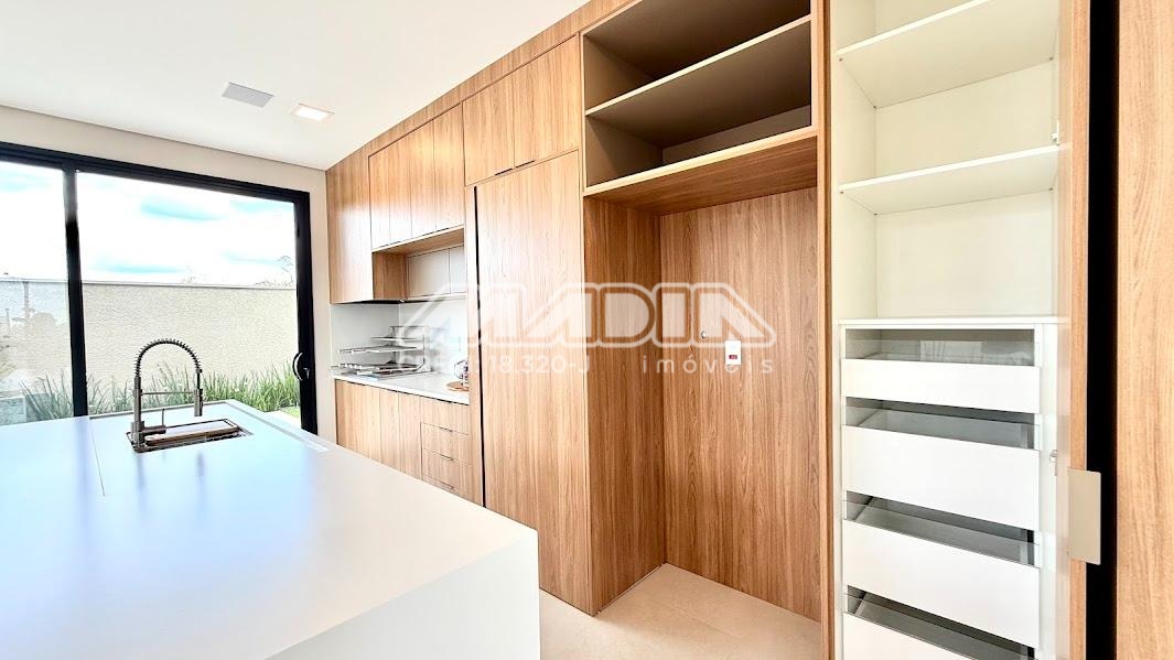 O imóvel possui 3 suítes com armários planejados, persianas automatizadas e iluminação em LED nos nichos, sendo a suíte máster com closet, cuba dupla e chuveiro duplo. Há ainda opção de 4ª suíte no térreo, além de escritório ideal para home office.