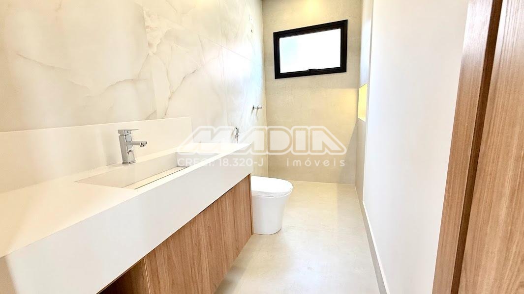 A casa conta ainda com 5 banheiros, automação residencial, som ambiente, depósito privativo e 4 vagas de garagem (2 cobertas).