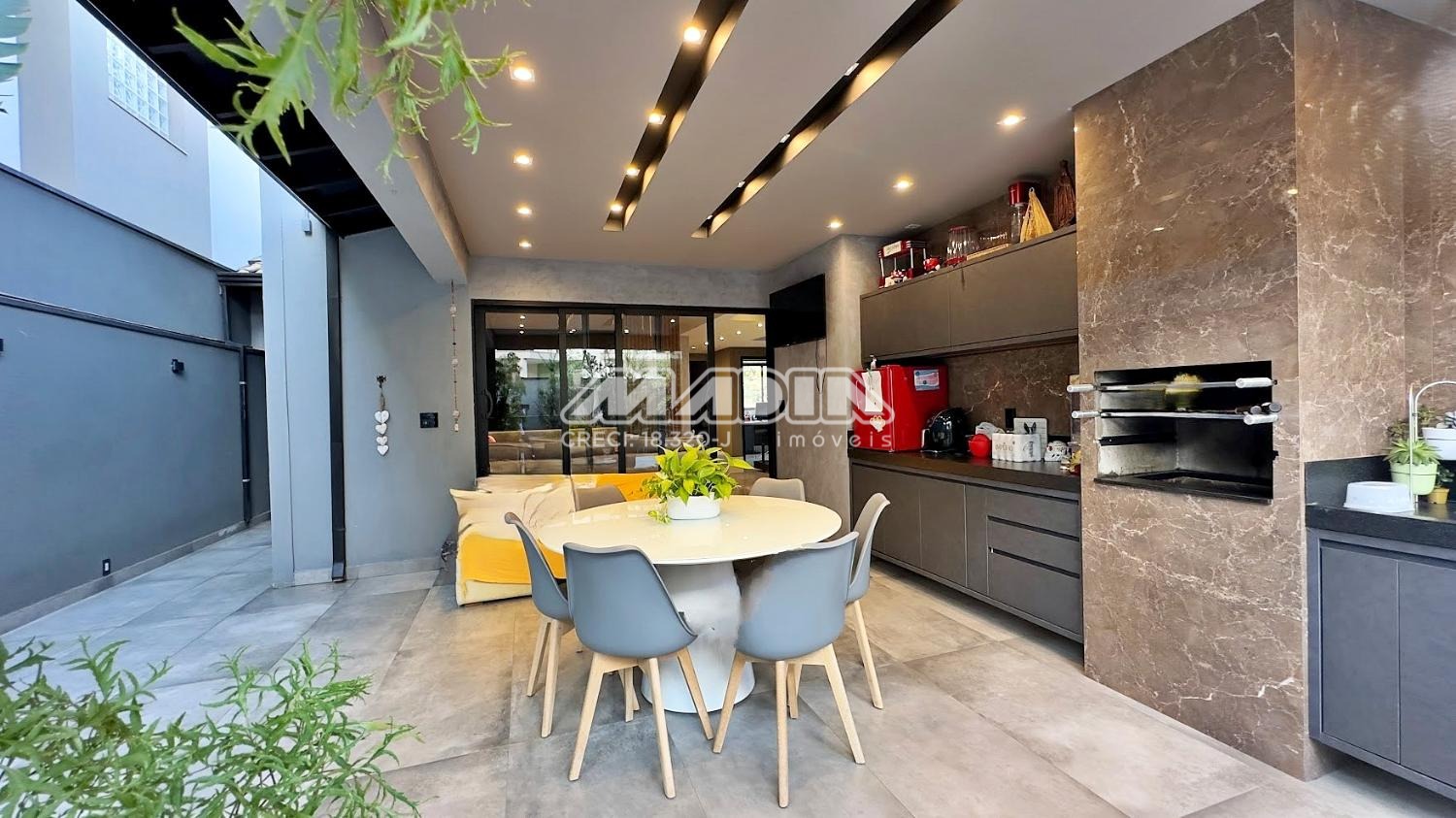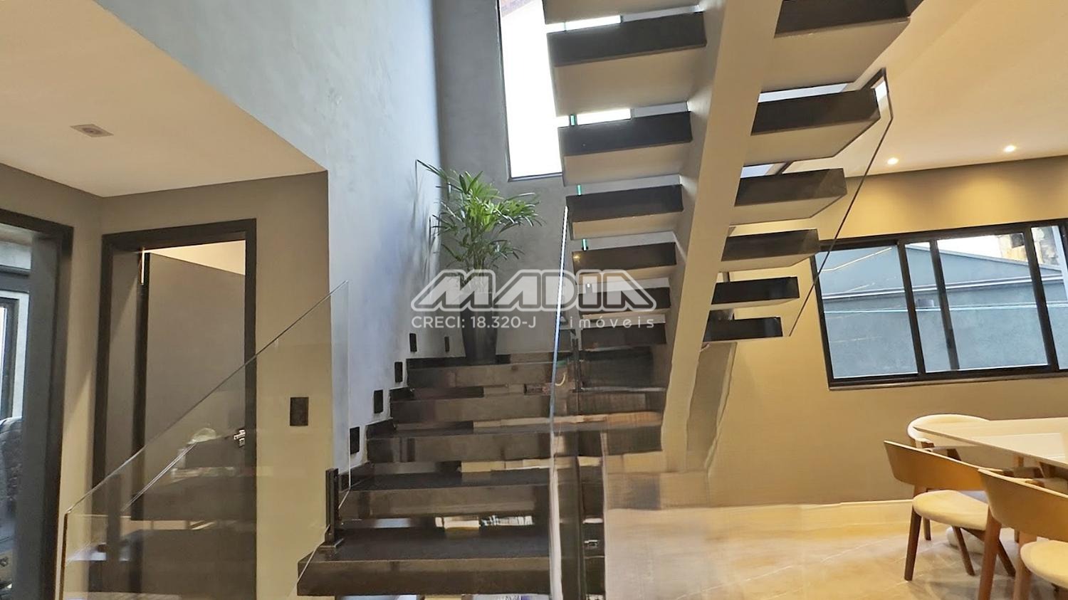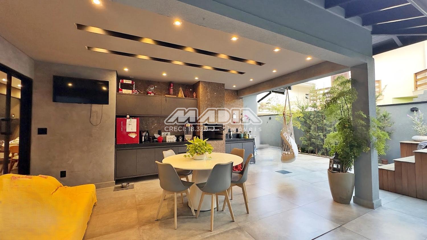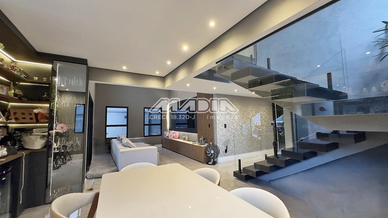A casa possui 454m² de terreno e 196m² de construção contendo 3 dormitórios com ar condicionado sendo 1 suíte com closet e 2 dormitórios com armários, banheiro social, escada, lavabo, escritório com ar condicionado, sala de TV, sala de estar, sala de jantar, cozinha planejada e tipo americana, cooktop, coifa, forno elétrico, despensa, lavanderia com armários, área de lazer com churrasqueira, ofurô, piso porcelanato em toda casa, energia fotovoltaica, garagem para 2 carros cobertos e 2 vagar para carros descobertas.