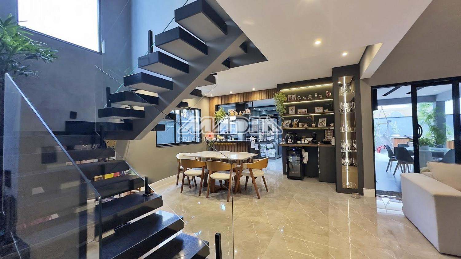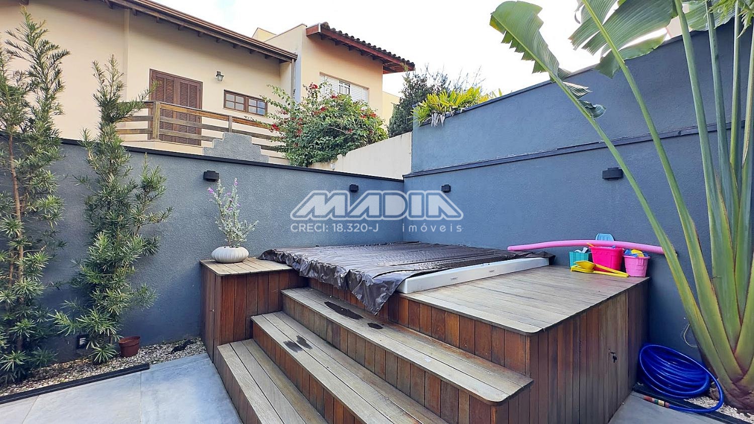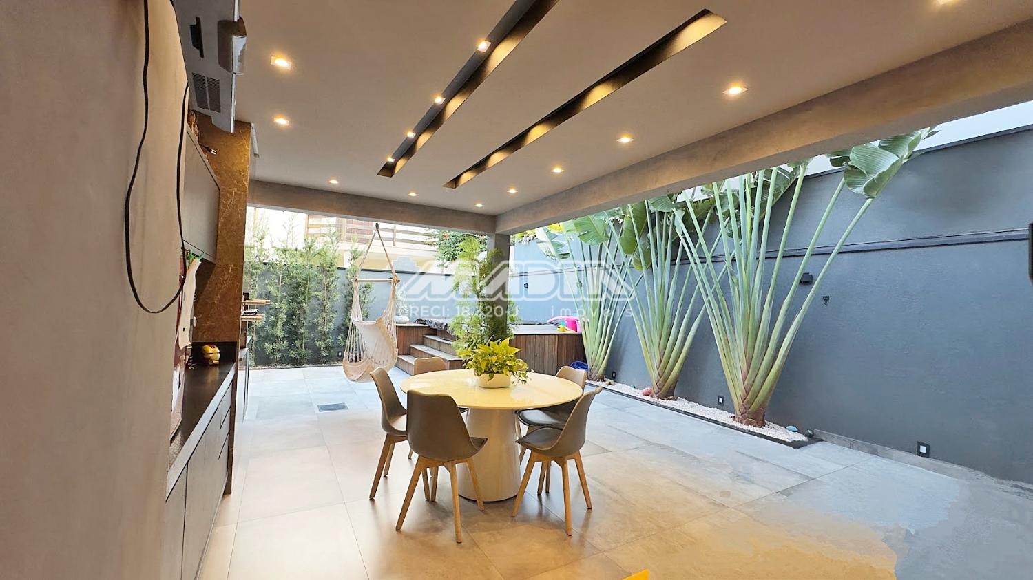 A casa possui 454m² de terreno e 196m² de construção contendo 3 dormitórios com ar condicionado sendo 1 suíte com closet e 2 dormitórios com armários, banheiro social, escada, lavabo, escritório com ar condicionado, sala de TV, sala de estar, sala de jantar, cozinha planejada e tipo americana, cooktop, coifa, forno elétrico, despensa, lavanderia com armários, área de lazer com churrasqueira, ofurô, piso porcelanato em toda casa, energia fotovoltaica, garagem para 2 carros cobertos e 2 vagar para carros descobertas.