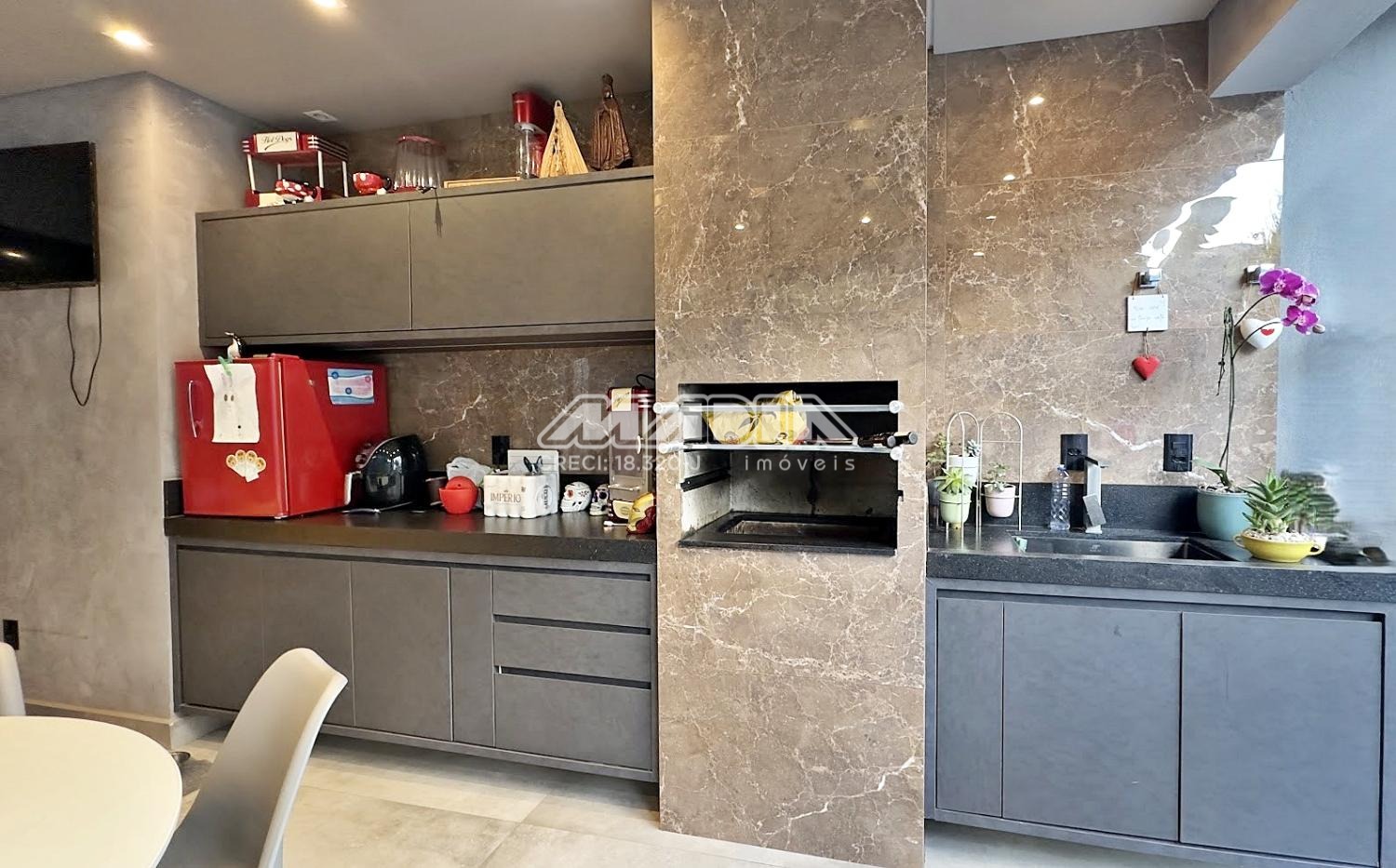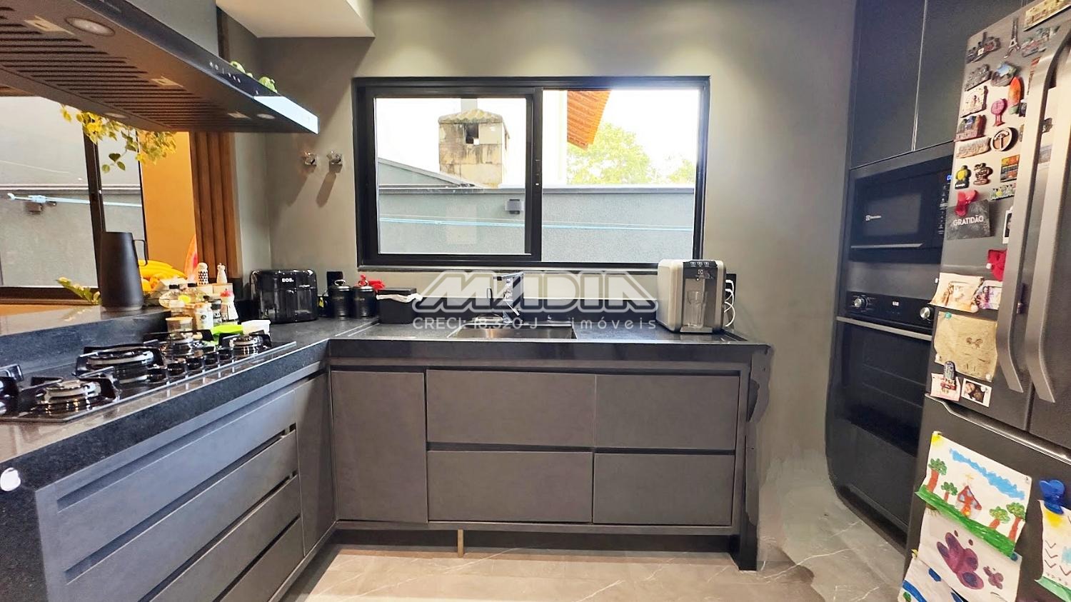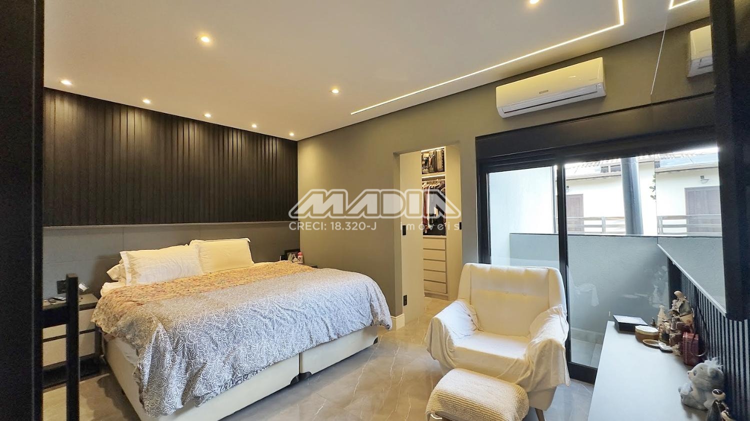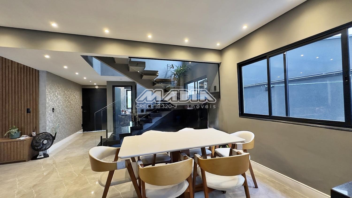 A casa possui 454m² de terreno e 196m² de construção contendo 3 dormitórios com ar condicionado sendo 1 suíte com closet e 2 dormitórios com armários, banheiro social, escada, lavabo, escritório com ar condicionado, sala de TV, sala de estar, sala de jantar, cozinha planejada e tipo americana, cooktop, coifa, forno elétrico, despensa, lavanderia com armários, área de lazer com churrasqueira, ofurô, piso porcelanato em toda casa, energia fotovoltaica, garagem para 2 carros cobertos e 2 vagar para carros descobertas.
