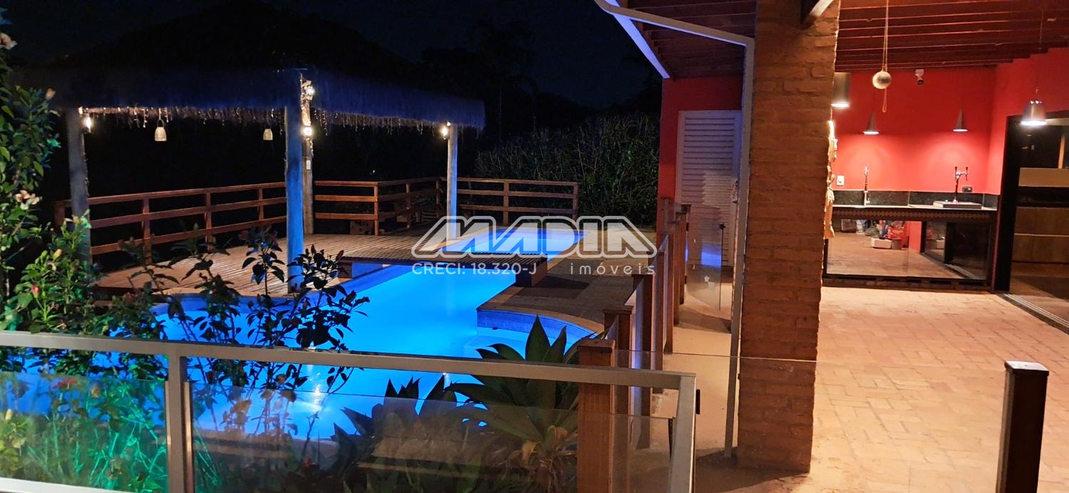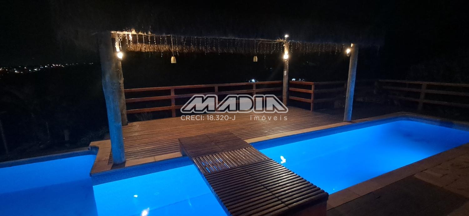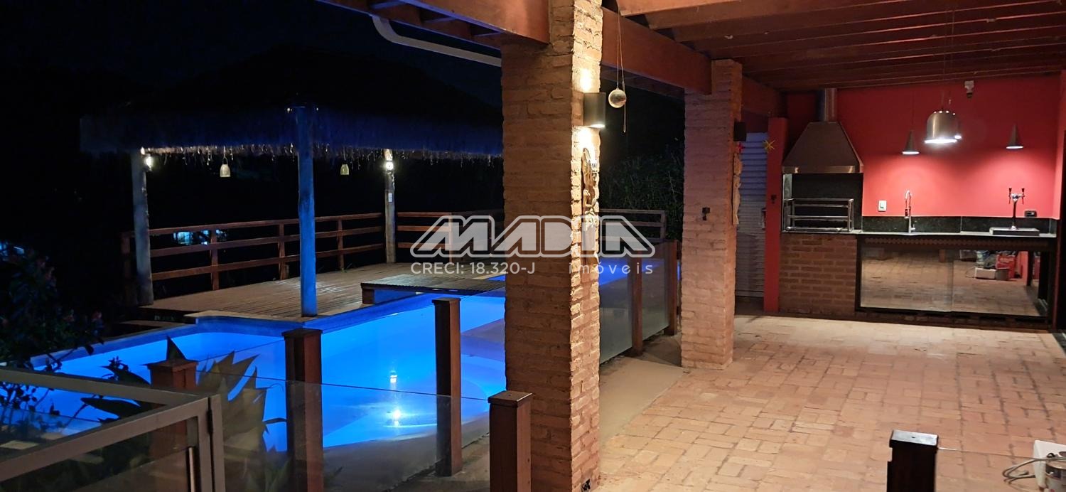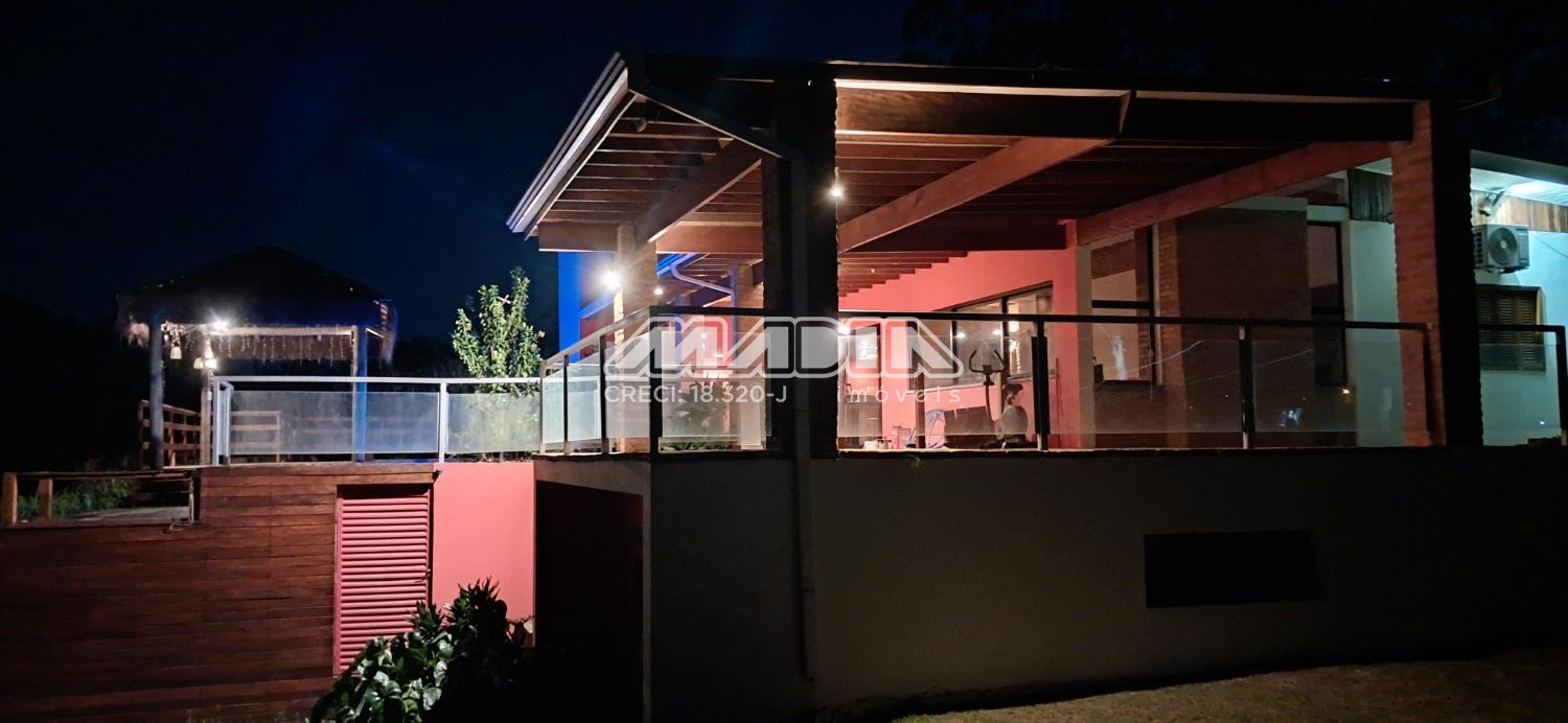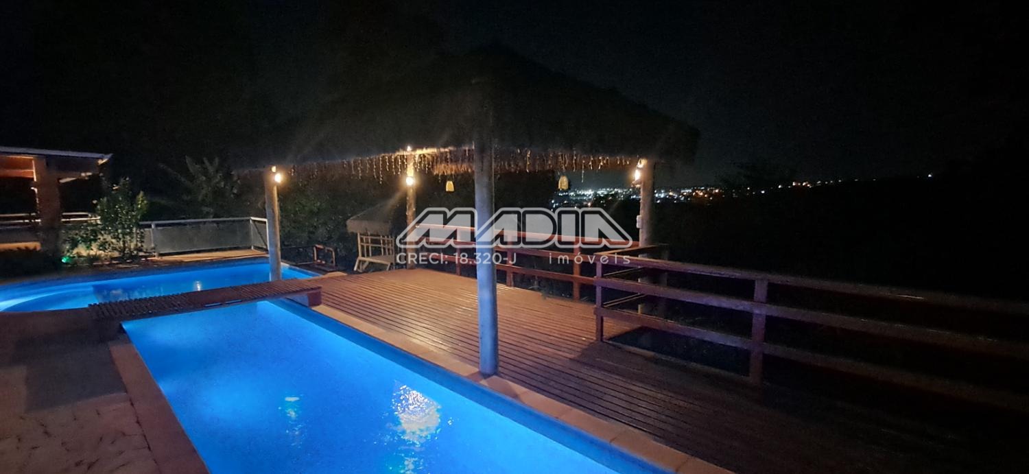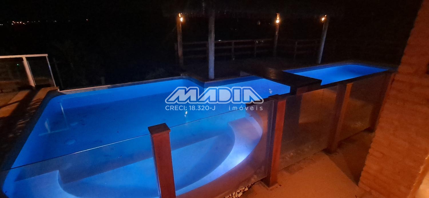 A chácara possui 1.640 m² de terreno e 266,87 m² de construção, toda documentada, com 3 suítes com ar condicionado, sendo 2 tipo americano, todas com armários, sala de jantar, sala de estar, cozinha planejada com forno cooktop, forno elétrico, em conceito aberto, lavanderia com armários, banheiro social, piscina com hidro e iluminação colorida, fibra ótica, churrasqueira com choperia, pomar.