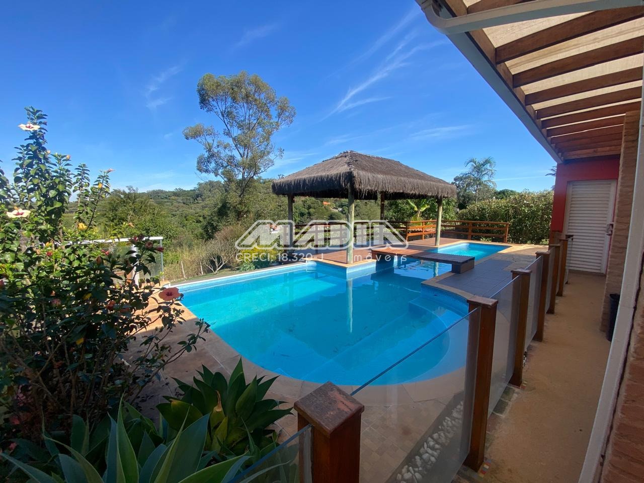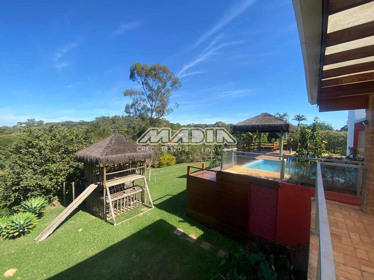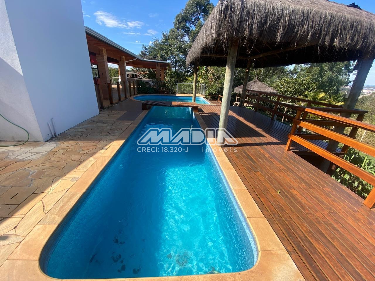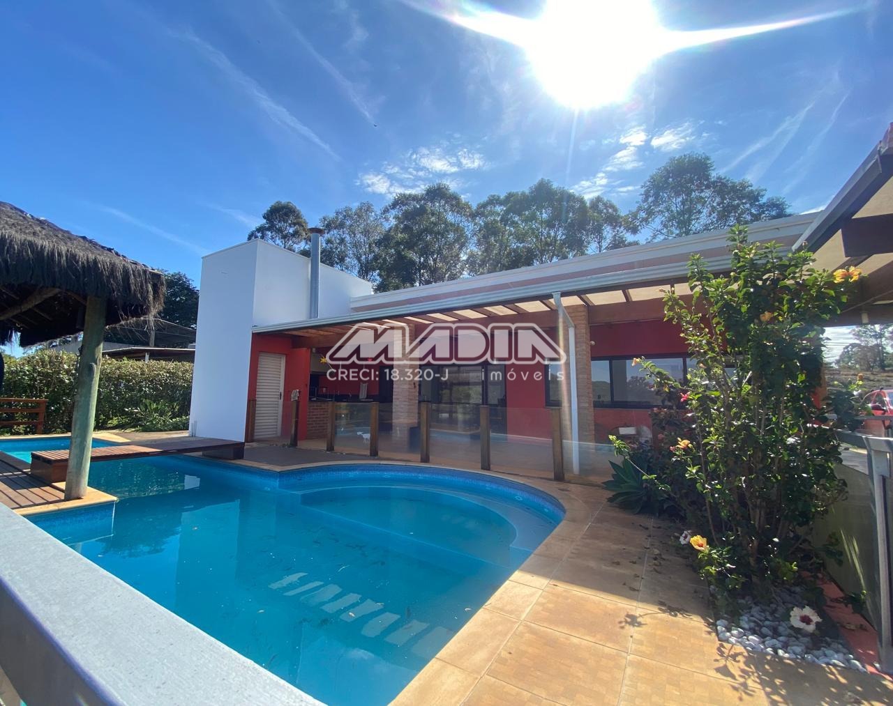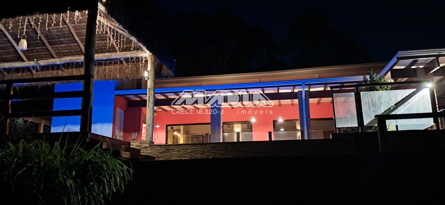 A chácara possui 1.640 m² de terreno e 266,87 m² de construção, toda documentada, com 3 suítes com ar condicionado, sendo 2 tipo americano, todas com armários, sala de jantar, sala de estar, cozinha planejada com forno cooktop, forno elétrico, em conceito aberto, lavanderia com armários, banheiro social, piscina com hidro e iluminação colorida, fibra ótica, churrasqueira com choperia, pomar.