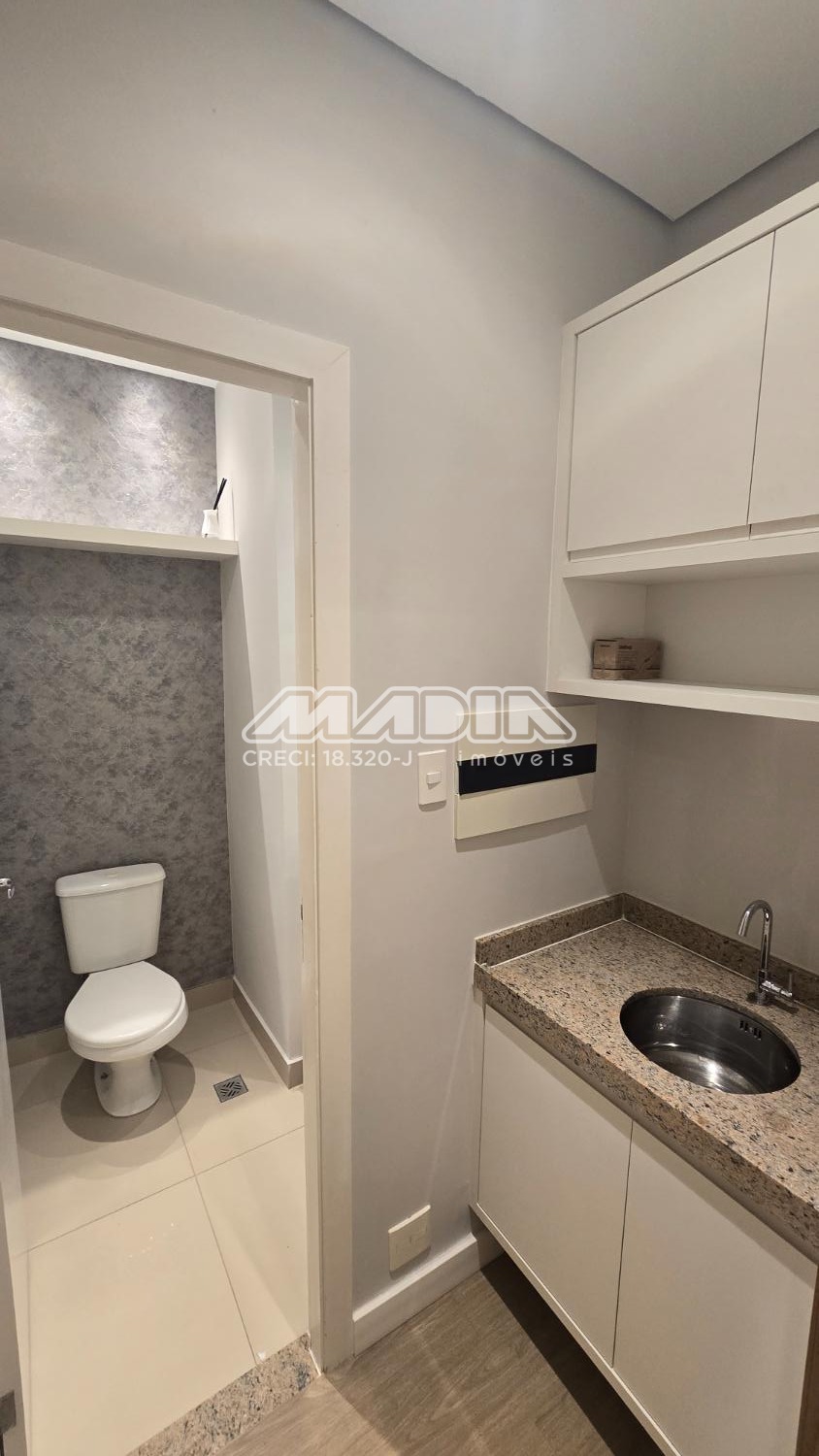Sala para alugar no condomínio Vértice em Valinhos. Excelente sala comercial moderna no terceiro andar do condomínio com portaria 24 horas e sistema de segurança. O imóvel está distribuído em duas salas amplas em ótimo acabamento, piso laminado, ótima luminosidade, ar condicionado, persianas, mesas e prateleiras de ótima qualidade, área de copa com armário, sistema de abertura da sala com interfone, uma vaga de garagem. Ótima localização em frente ao shopping Valinhos e fácil acesso as principais rodovias Anhanguera, Dom Pedro e Bandeirantes. Agende sua visita com um de nossos corretores.