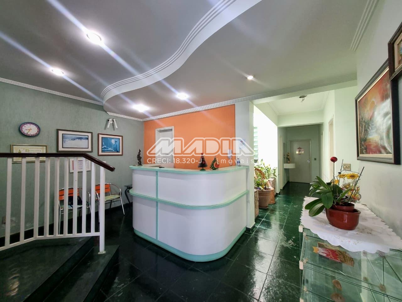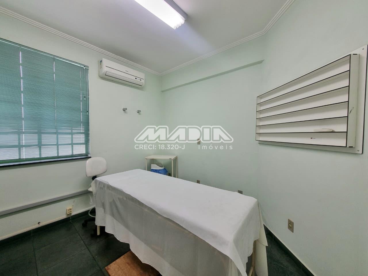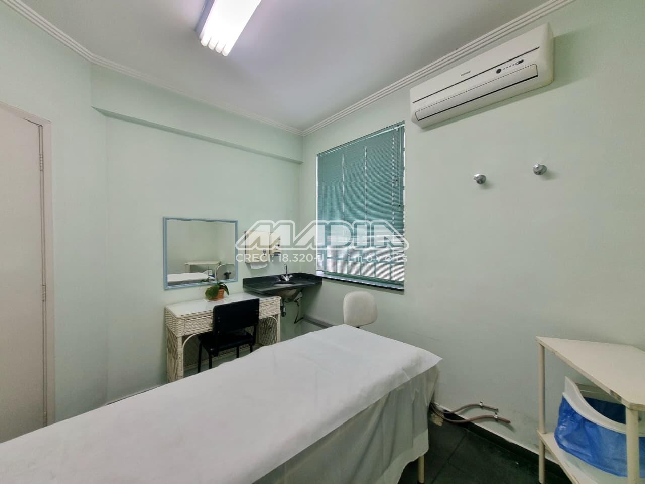 Sala de 10m², ar condicionado, recepção, banheiro coletivo.