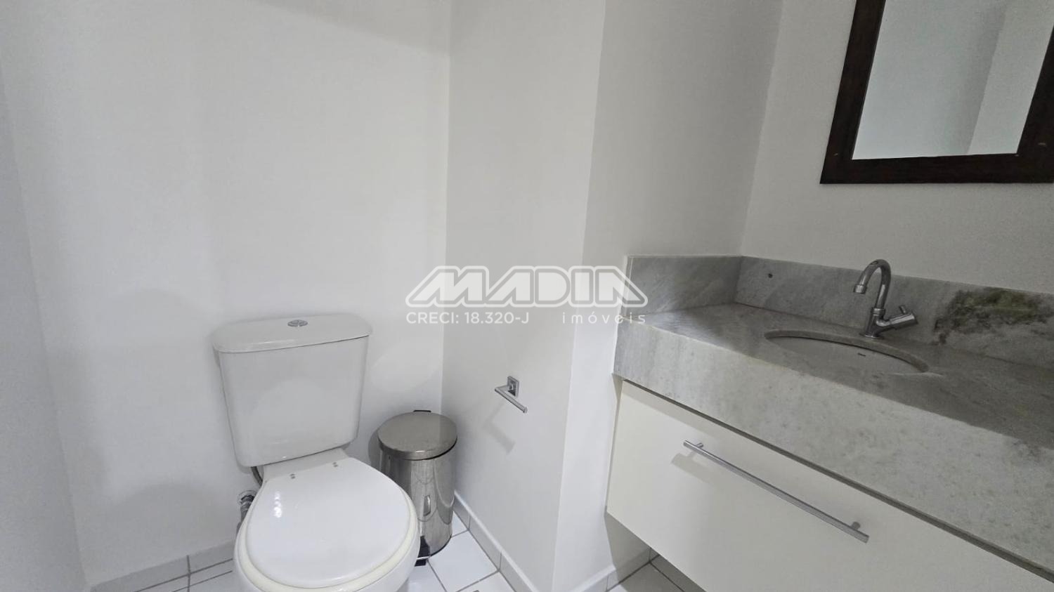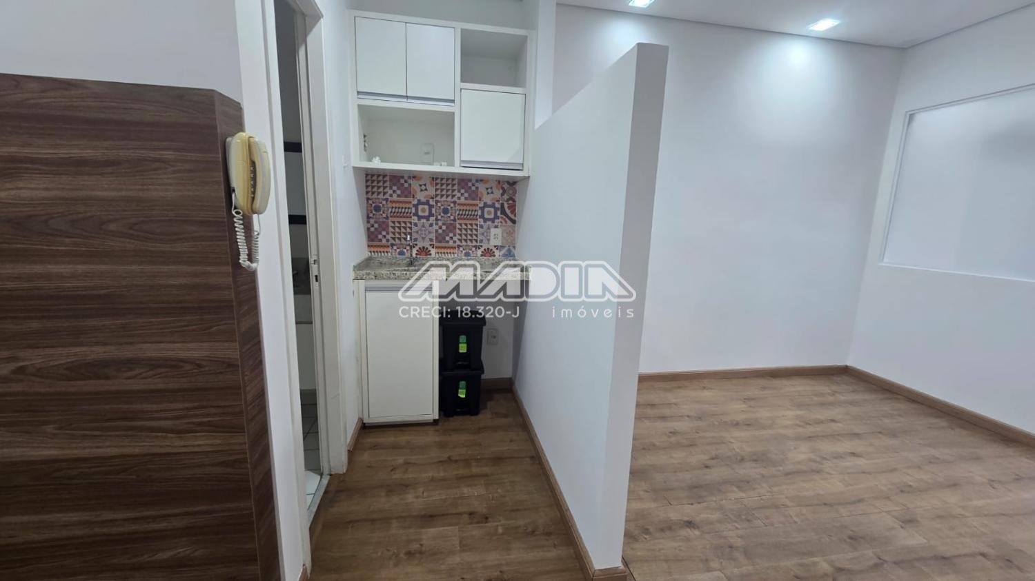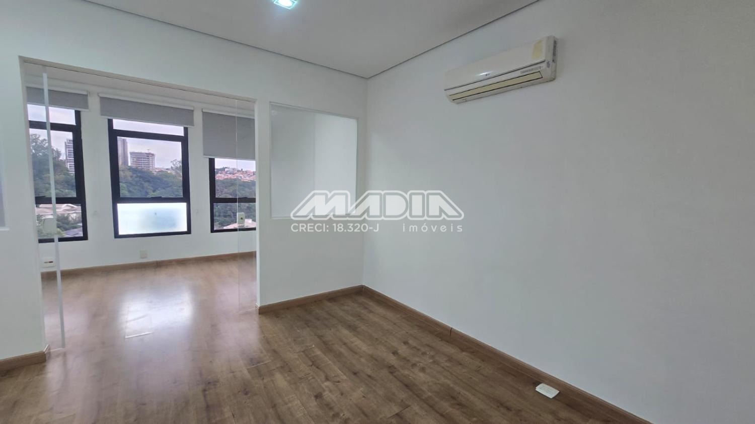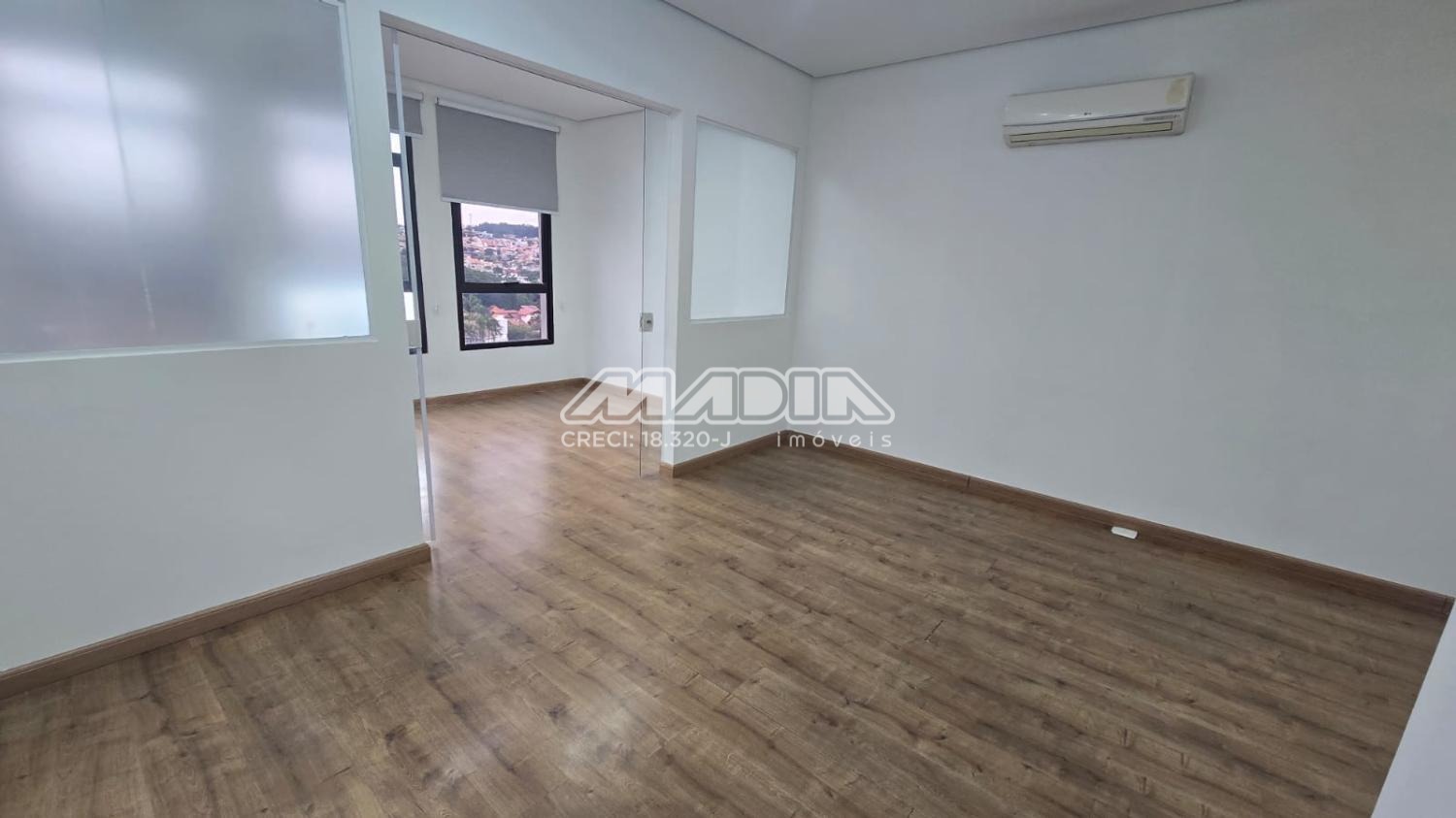 Sala para locação com 38m² de área útil, localizado no 5º andar, possui 2 ambientes e 2 aparelhos de ar-condicionado, copa com armário e um banheiro. Acabamento em piso laminado. A sala tem direito de uma vaga de garagem não demarcada, podendo ser coberta ou descoberta.
