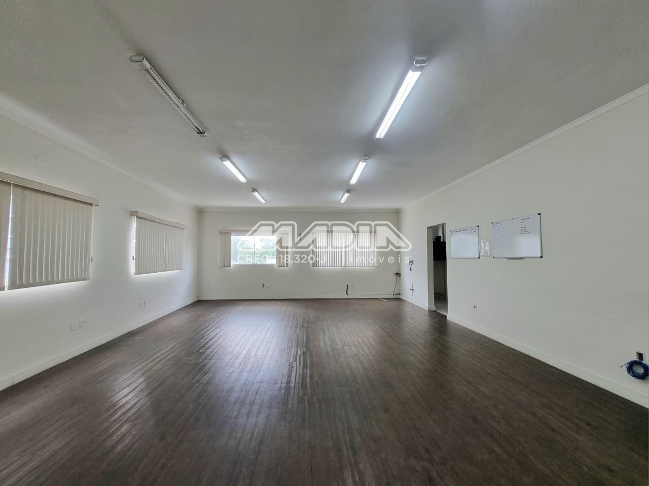 Sala de 100m², piso superior, 2 salas 2 copas, 2 banheiros, instalação para ar condicionado em 1 sala, vaga de garagem coberta, portão eletrônico.