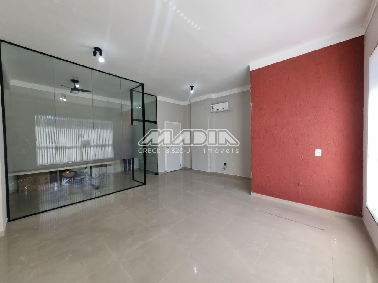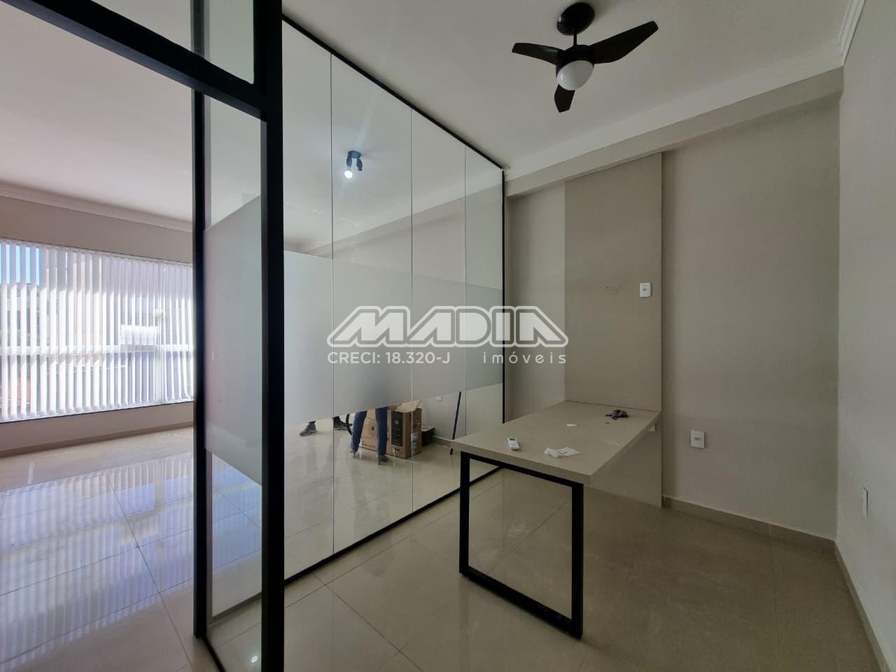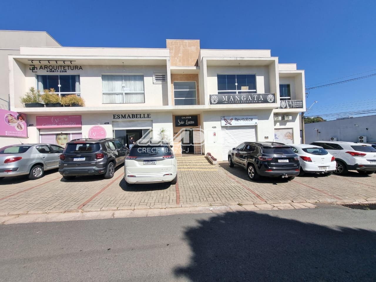 Sala de 38m², superior, 1 banheiro, ar condicionado, 1 sala com divisória e mesa, estacionamento rotativo para clientes.