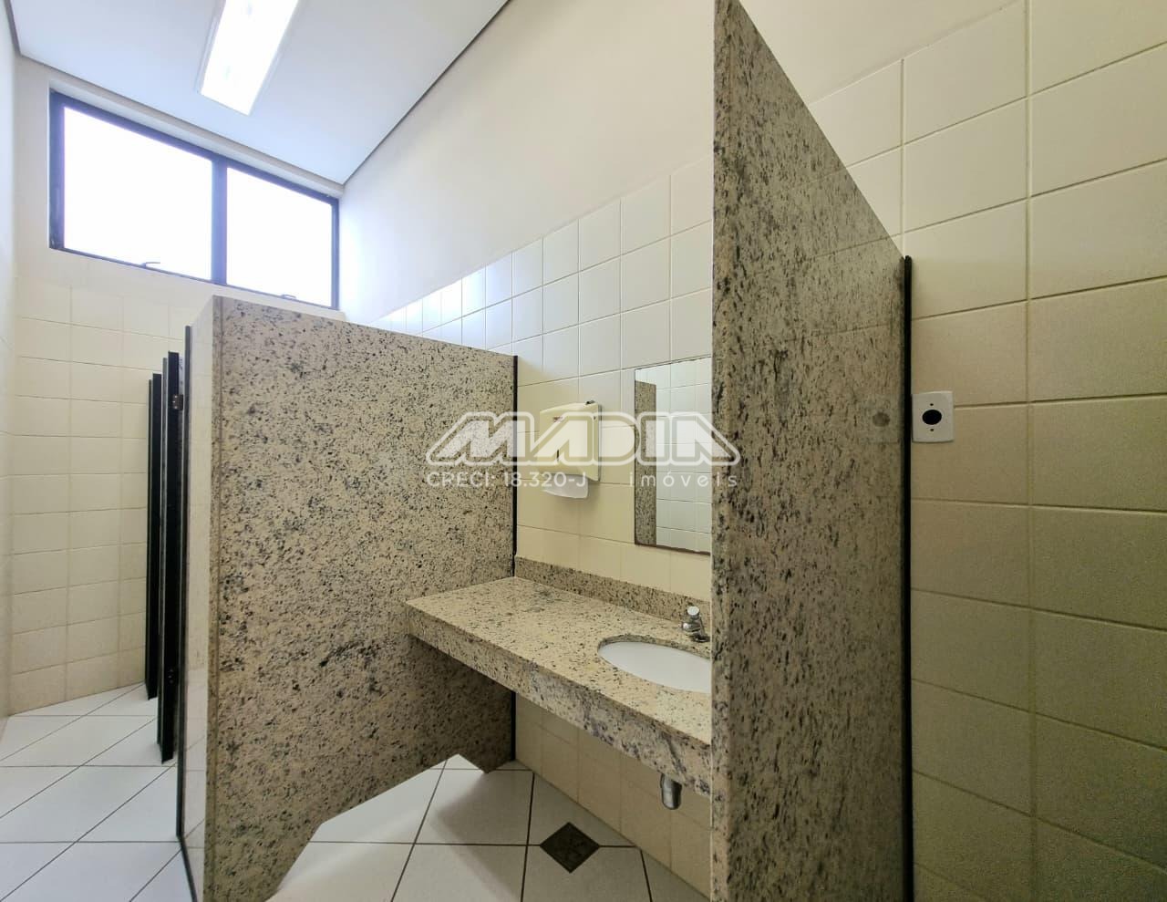 Salão de 114,00m², salão, sala para escritório, 2 banheiros privativos, banheiros coletivos e estacionamento, entrada pela praça de alimentação e pelo estacionamento.