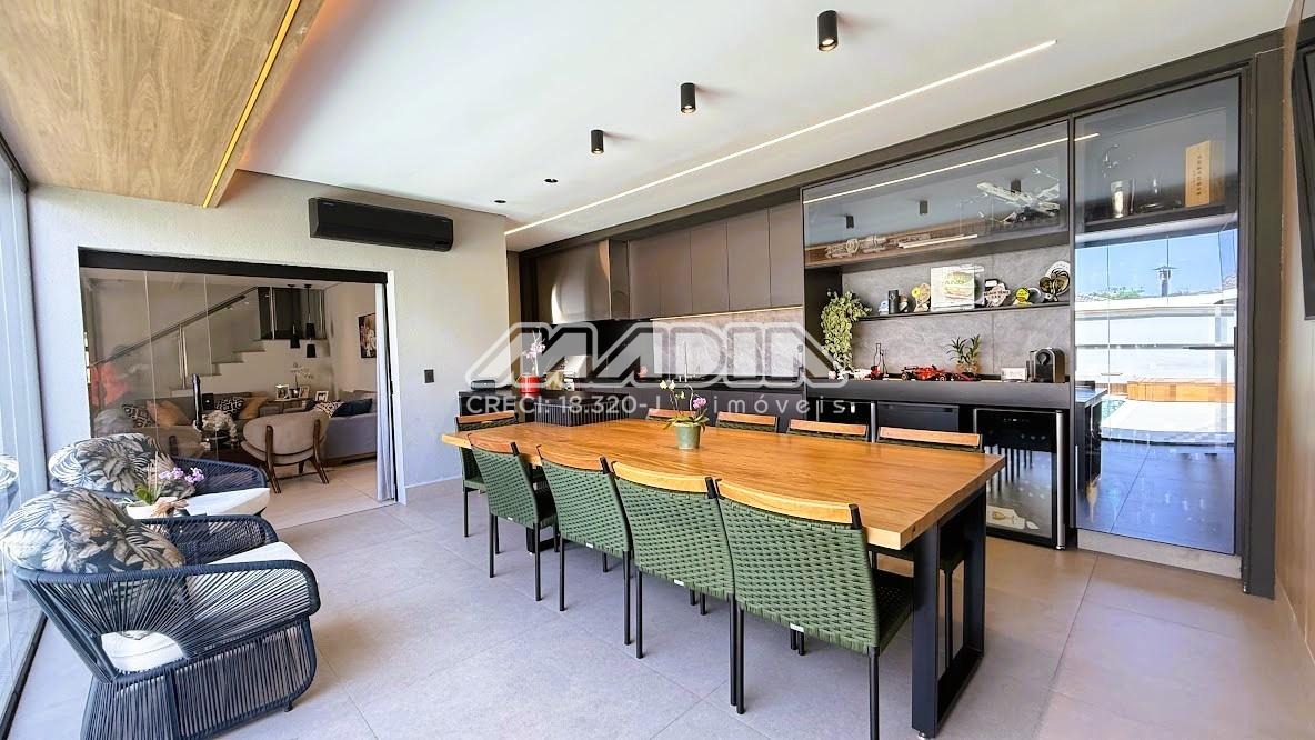 Sobrado com sala de estar, de tv, de jantar, mezanino, escritório com armário, home theater com painel, varanda, 3 dormitórios,...